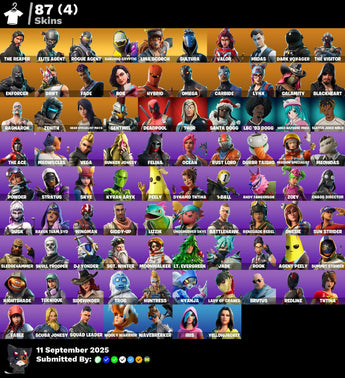 87 Skins ⭐️ The Reaper - Elite Agent - Take The L - Get Griddy - Omega - Iris - Skull Trooper - Peely - Drift - Deadpool - Zoey - Orange Justice - Yellowjacket