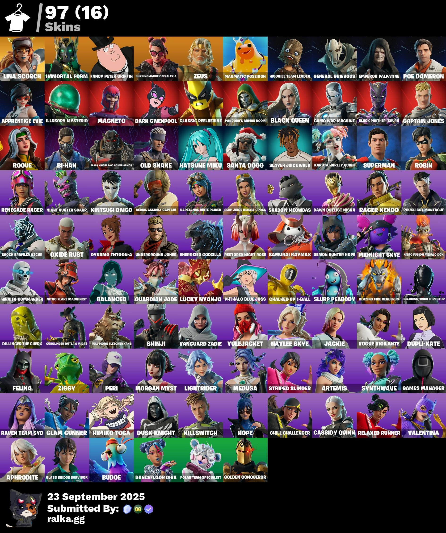 97 TOP SKINS [PC/PSN/XBOX]|LINA SCORCH ✅ IMMORTAL FORM ✅ FANCY PETER GRIFFIN ✅ BURNING AMBITION VALERIA ✅ ZEUS ✅ MAGMATIC POSEIDON ✅ WOOKIEE TEAM LEADER