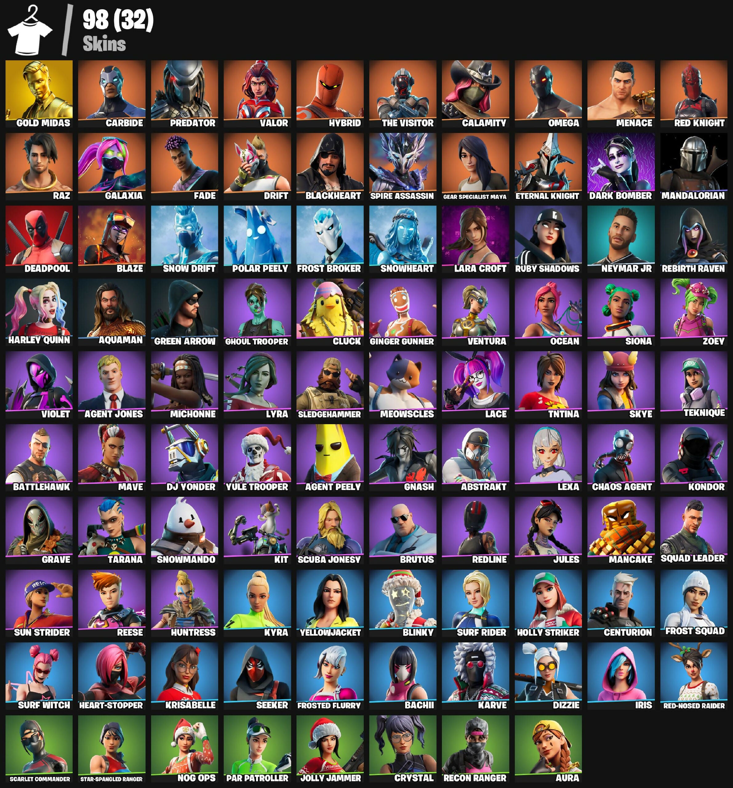 98 skins | Gold Midas | Carbide | Predator | Valor | Hybrid | The Visitor | Calamity | Omega | Menace | Red Knight | Raz | 150 VB - [PC/PSN/XBOX]