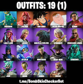 ? Fortnite Maxed Account | ? 19 Rare Skins | ? Level 210 | ? 25 Wins | ? Full Access – Poseidon | Son Goku | Godzilla Evolved | Korra | Peter Griffin