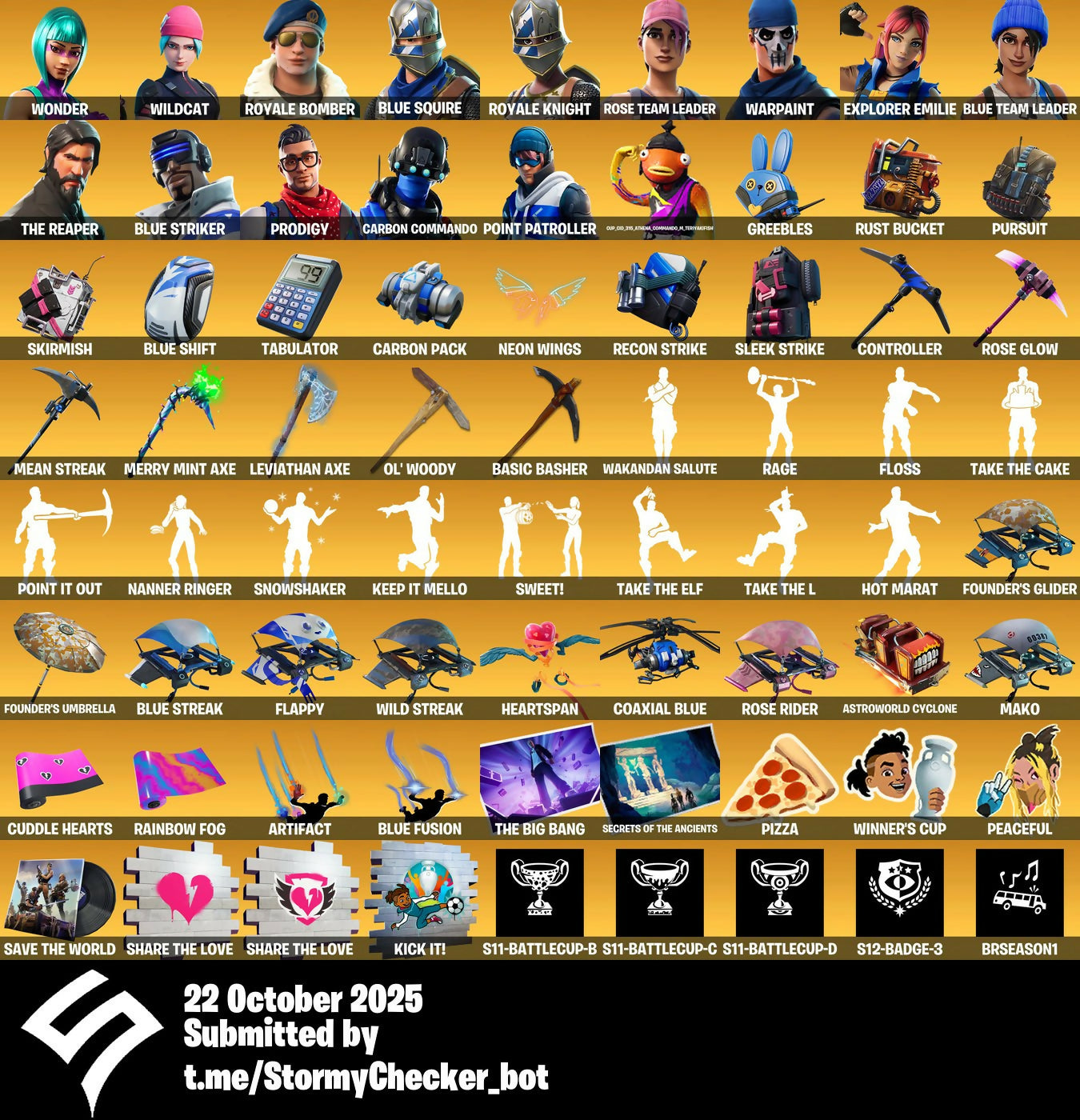 OG Fortnite Account☑️343 Skins☑️Wonder☑️Wildcat☑️Royale Bomber☑️Blue Squire☑️Royale Knight☑️The Reaper☑️Blue Team Leader☑️Blue Striker☑️WC Fishstick☑️Mogul Master☑️Merry Mint Axe☑️Leviathan Axe☑️Candy Axe☑️Cold Snap☑️Laugh it up☑️Floss☑️Take the L☑️Mako☑️