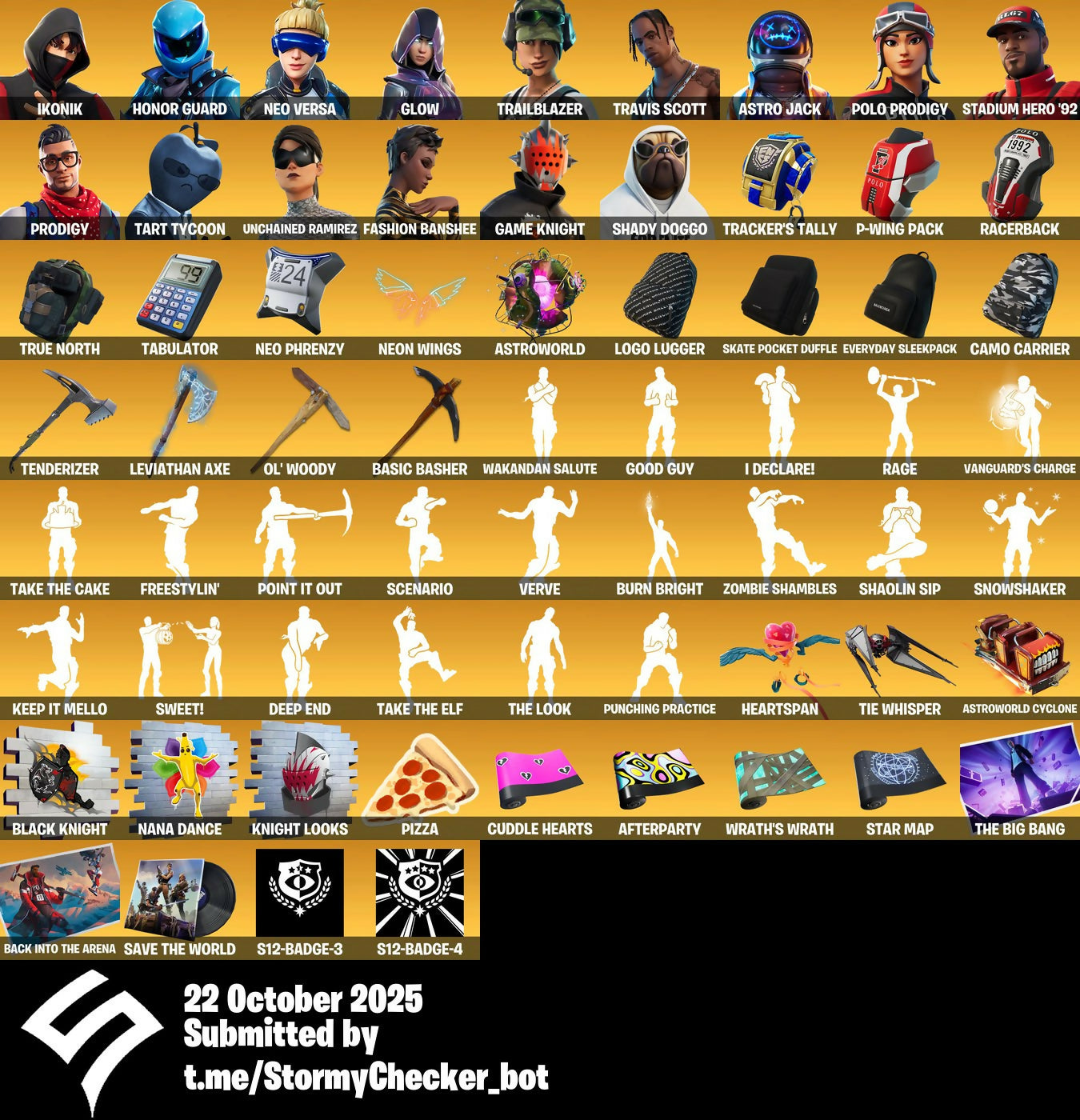 OG Fortnite Account☑️608 Skins☑️IKONIK☑️Honour Guard☑️Neo Versa☑️Glow☑️Travis Scott☑️Astro Jack☑️Omega☑️Twitch Prime☑️Polo Prodigy☑️Stadium Hero '92☑️Mogul Master☑️Banner Shield☑️Leviathan Axe☑️Candy Axe☑️Cold Snap☑️Harley Hitter☑️Freestylin'☑️Scenario☑️
