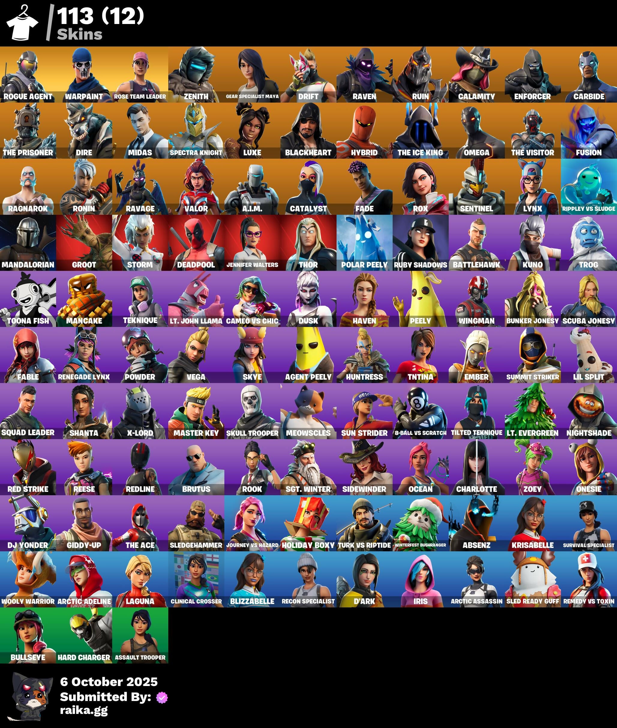 [PC] 113 skins | OG STW | Rogue Agent | Zenith | Gear Specialist Maya | Drift | Raven | Ruin | Calamity | Enforcer | Carbide | The Prisoner | Dire | 135 VB