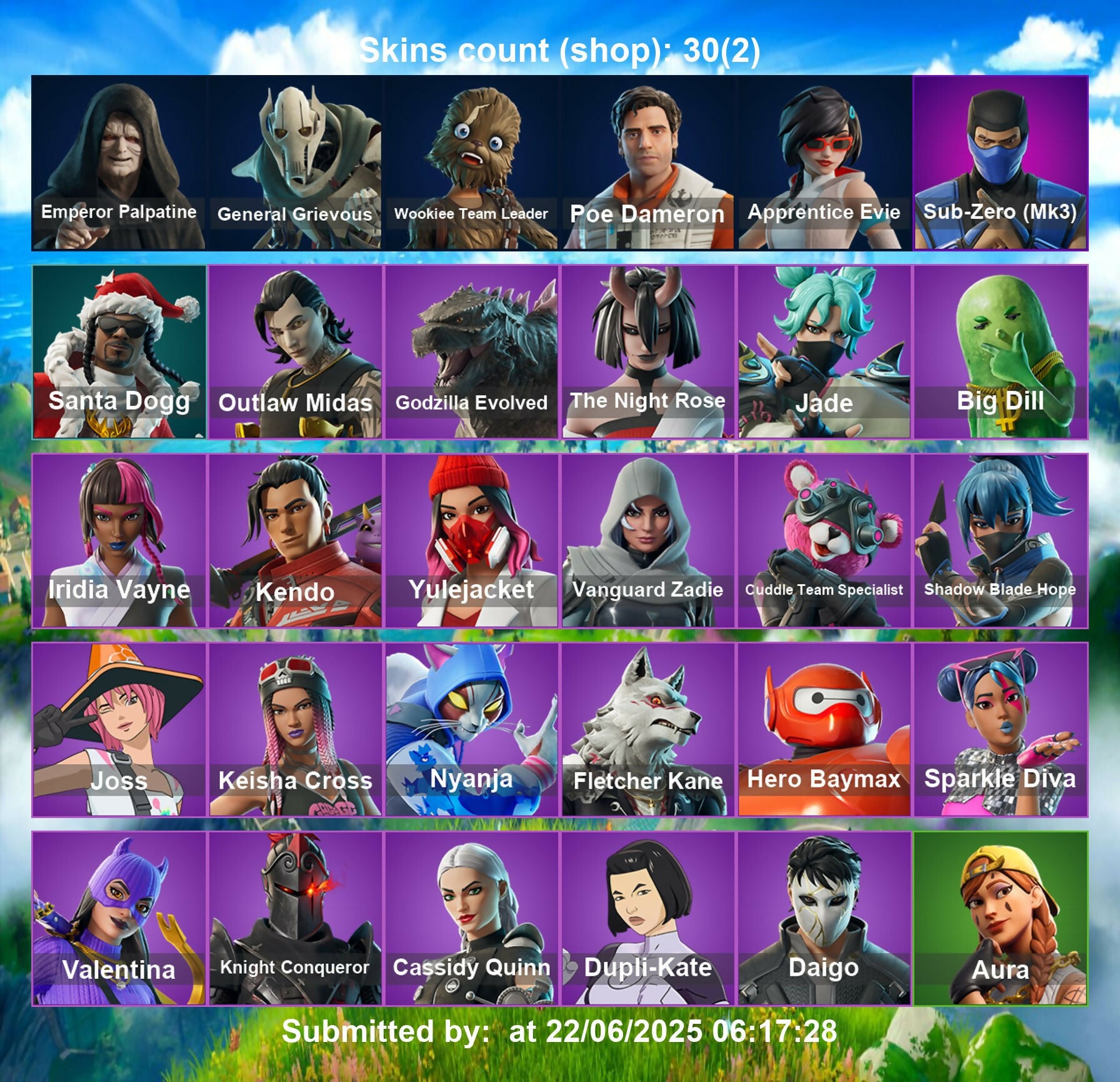 [PC] 30 skins | Emperor Palpatine | General Grievous | Wookiee Team Leader | Poe Dameron | Apprentice Evie | Sub-Zero (MK3) | Santa Dogg | 500 VB