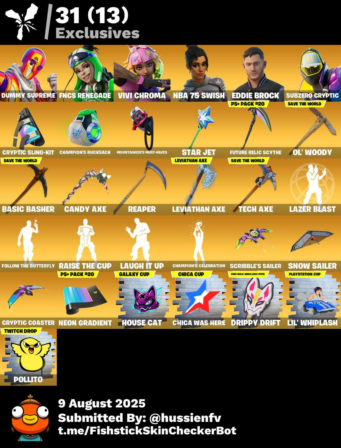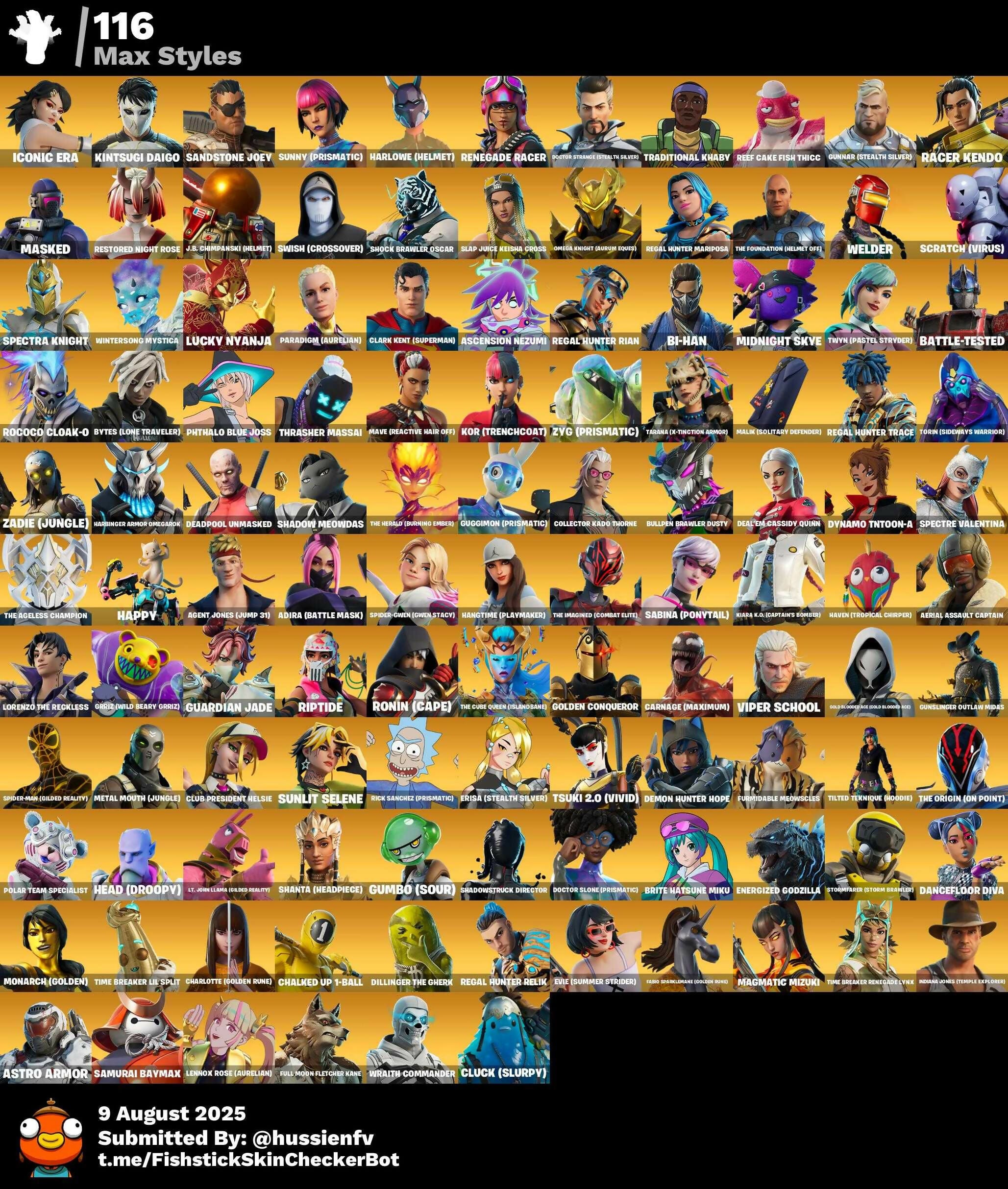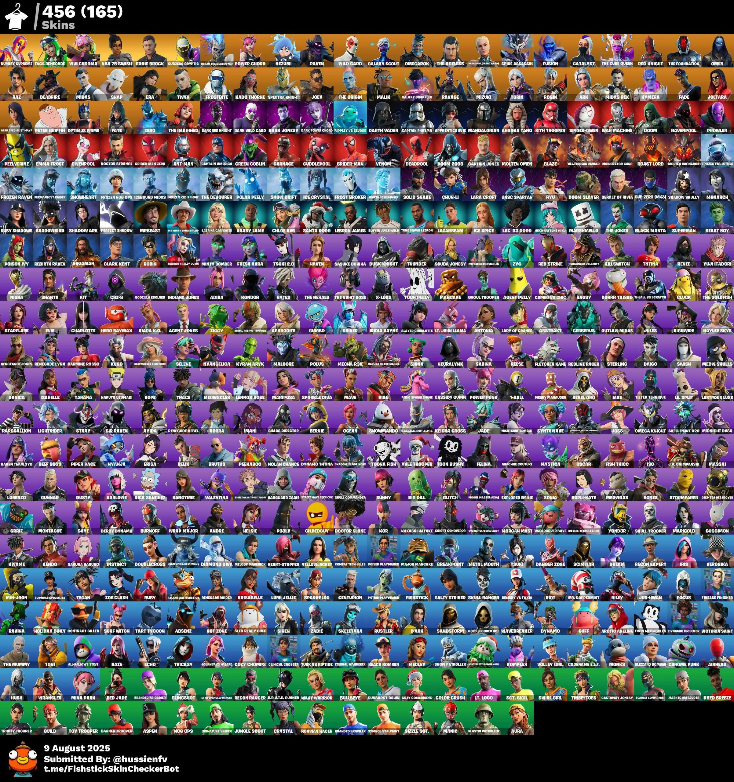 [PC] 456 skins | Dummy Supreme | FNCS Renegade | Vivi Chroma | NBA 75 Swish | Eddie Brock | Subzero Cryptic | Cryptic Sling-kit | 900 VB