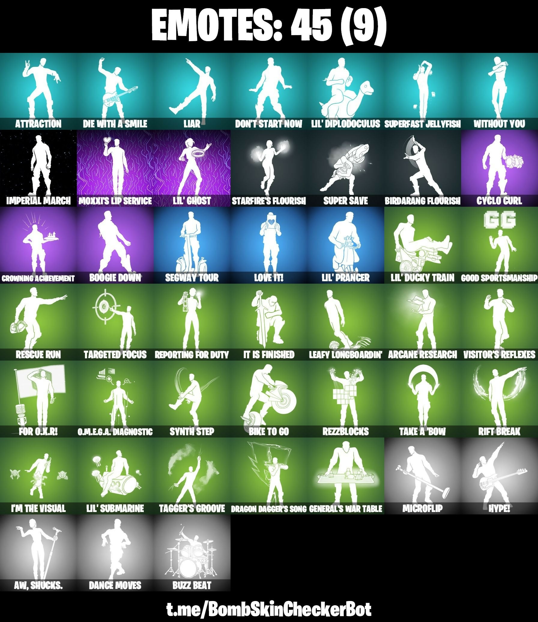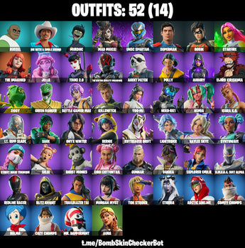 🦄 Outfits: Russel | Die With A Smile Bruno | Murdoc | Mad Moxxi | UNSC Spartan | Superman | Robin | Starfire | The Imagined | Jella | Tsuki 2.0 | The Visitor (Reality Unknown) | Agent Patch | Polly | Augury | Eijiro Kirishima | Ziggy | Green Ranger | Battle Gamer Mae | Killswitch | Yoo-mi | Neko-RX1 | Nemia | Kiara K.O. | Lt. Ripp Slade | Sage | Onyx Winter | Bernie | Riftreaver Drift | Lightrider | Haylee Skye | Synthwave | Street Wave Teknique | Selbi | GHOST Monks | Codi Cottontail | Gunnar | Danica | Explorer Emilie | O.M.E.G.A. Suit Alpha | Redline Racer | Blitz Knight | Trailblazer Tai | Morgan Myst | Tide Strider | Etheria | Arctic Adeline | Comfy Chomps | Bulma | Cozy Chomps | Mr. Dappermint | Aura