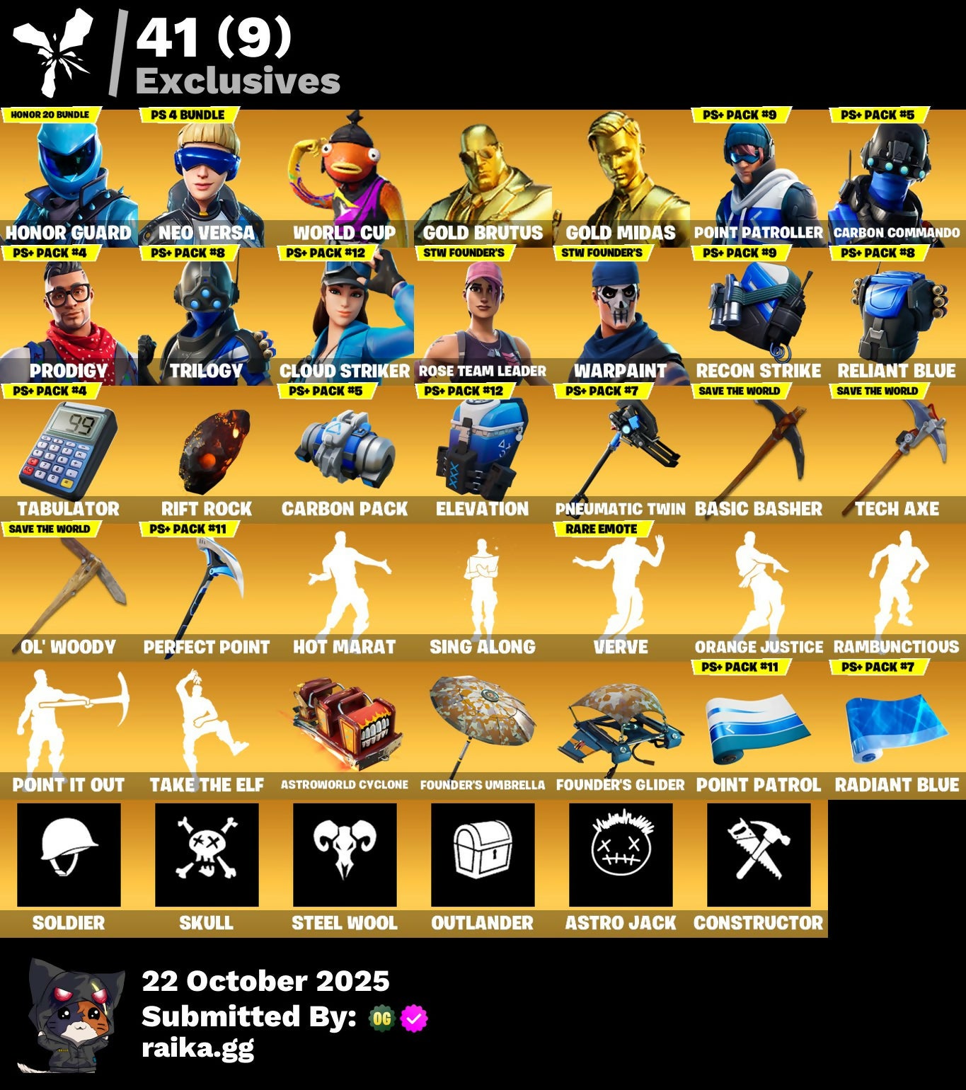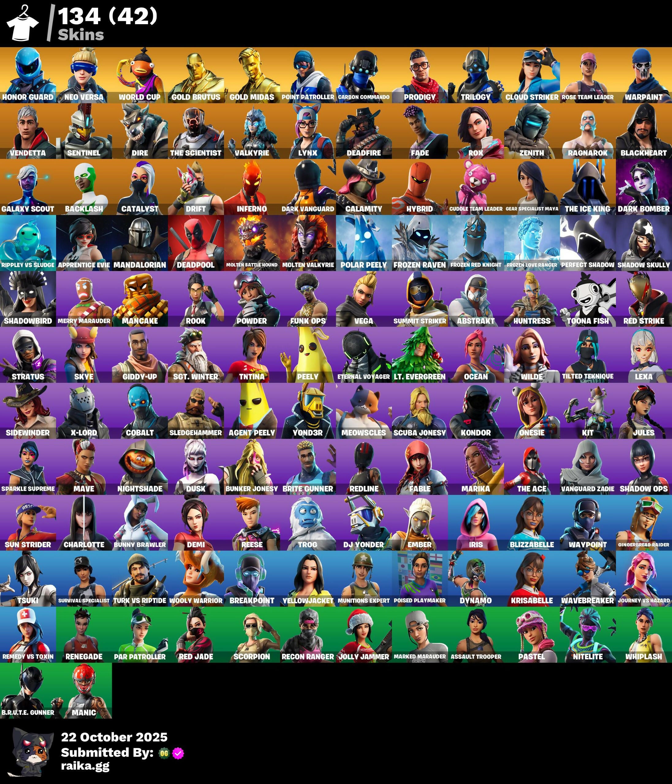 [PC/NITTENDO] 134 skins | OG STW | Honor Guard | Neo Versa | WORLD CUP | Gold Brutus | Gold Midas | Point Patroller | Carbon Commando | Prodigy | Trilogy | 250 VB