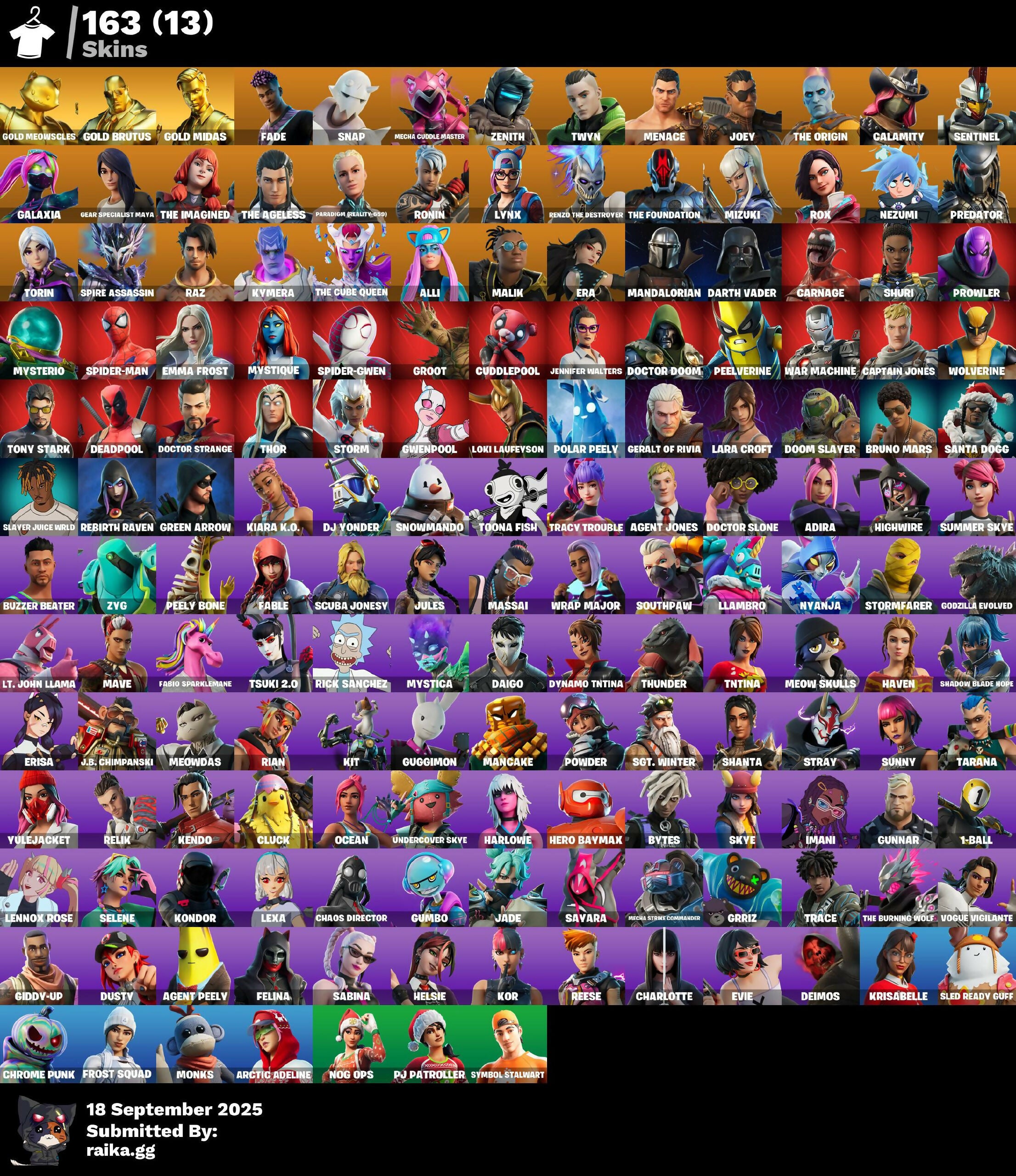 [PC/PSN] 163 skins | Gold Meowscles | Gold Brutus | Gold Midas | Fade | Snap | Mecha Cuddle Master | Zenith | Twyn | Menace | Joey | The Origin | 50 VB / Fortnite