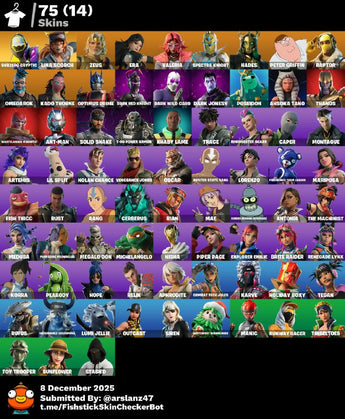 [PC/PSN] 75 skins | Subzero Cryptic | Lina Scorch | Zeus | Era | Valeria | Spectra Knight | Hades | Peter Griffin | Raptor | Omegarok | Kado Thorne | 250 VB