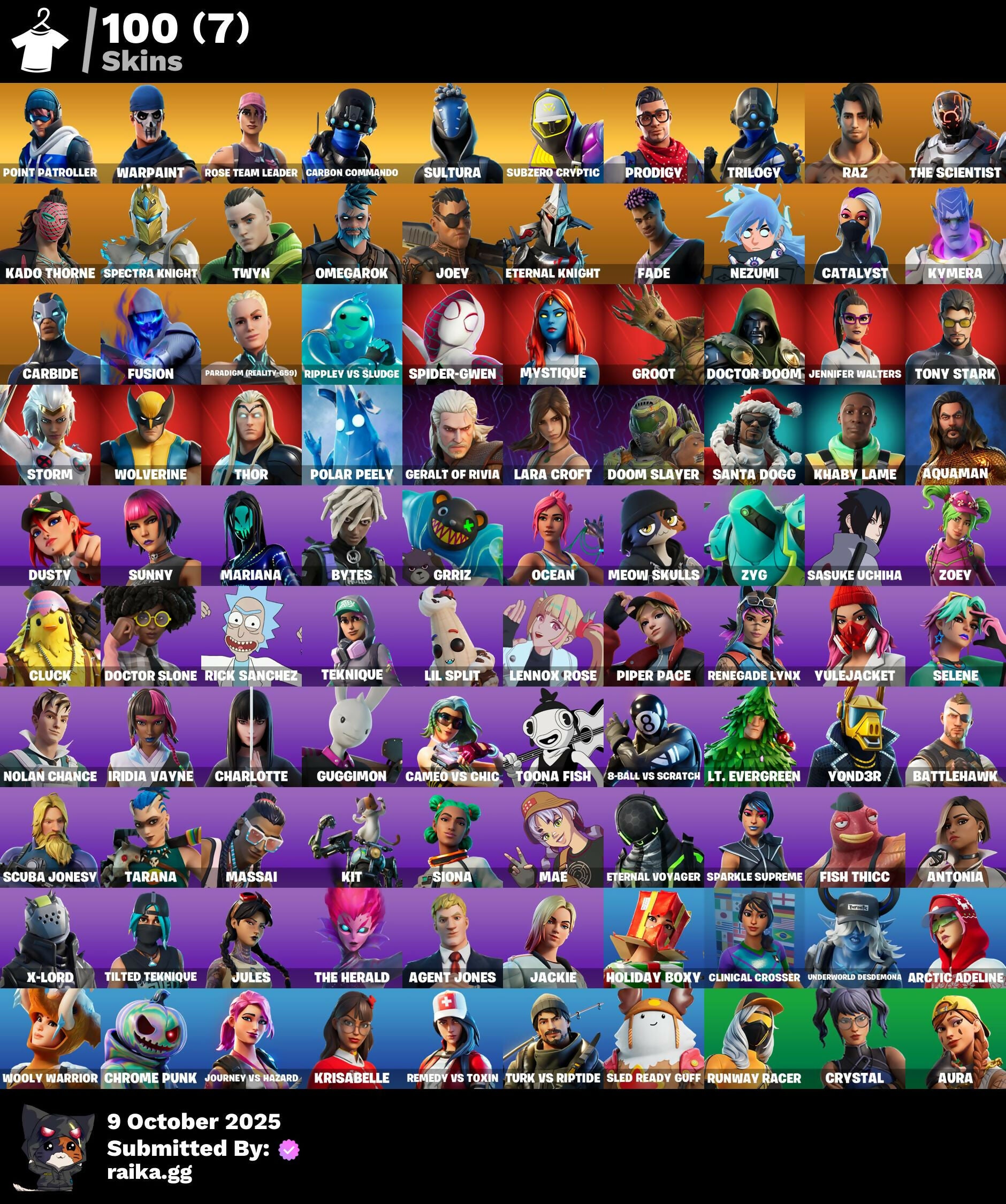 [PC/PSN/XBOX] 100 skins | OG STW | Point Patroller | Carbon Commando | Sultura | Subzero Cryptic | Prodigy | Trilogy | Raz | The Scientist | Kado Thorne | 600 VB