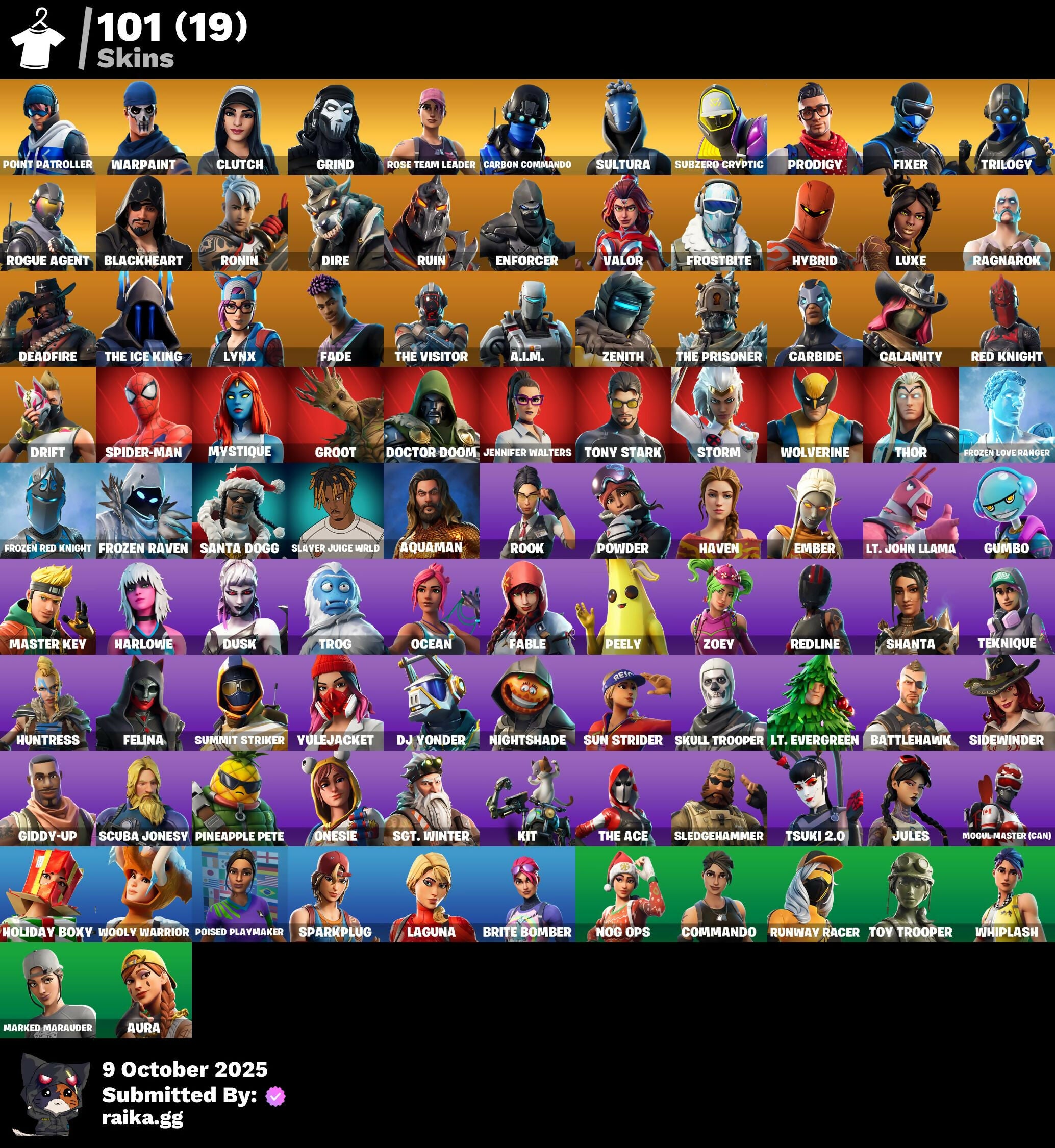 [PC/PSN/XBOX] 101 skins | OG STW | Point Patroller | Clutch | Grind | Carbon Commando | Sultura | Subzero Cryptic | Prodigy | Fixer | Trilogy | Rogue Agent | 2050 VB