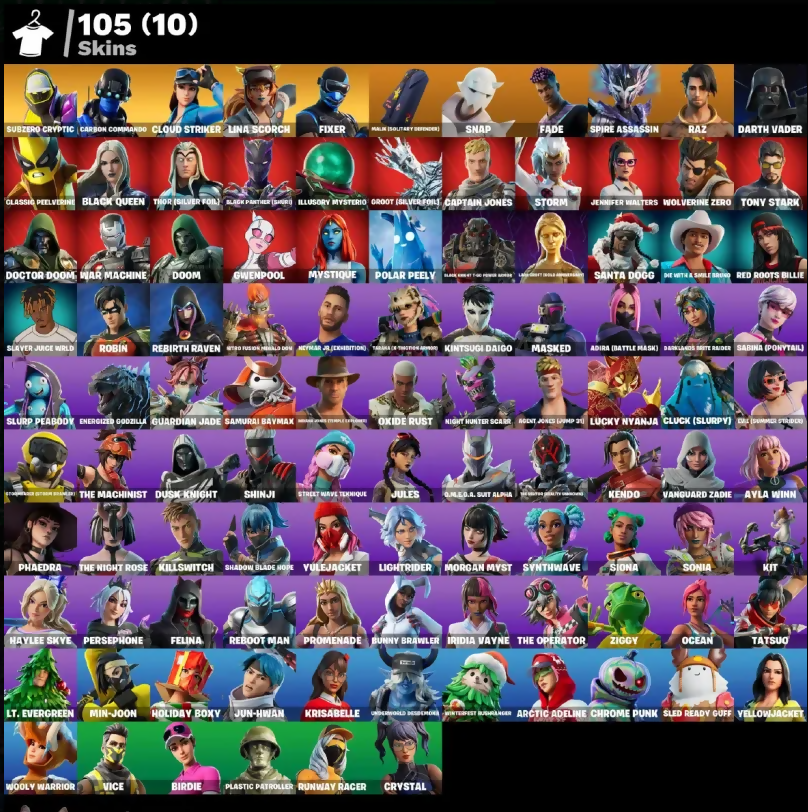 [PC/PSN/XBOX] 105 SKINS + SUBZERO CRYPTIC + FIXER + CLOUD STRIKER + LINA SCORCH + DARTH VADER + CARBON COMMANDO + PARENTAL CODE