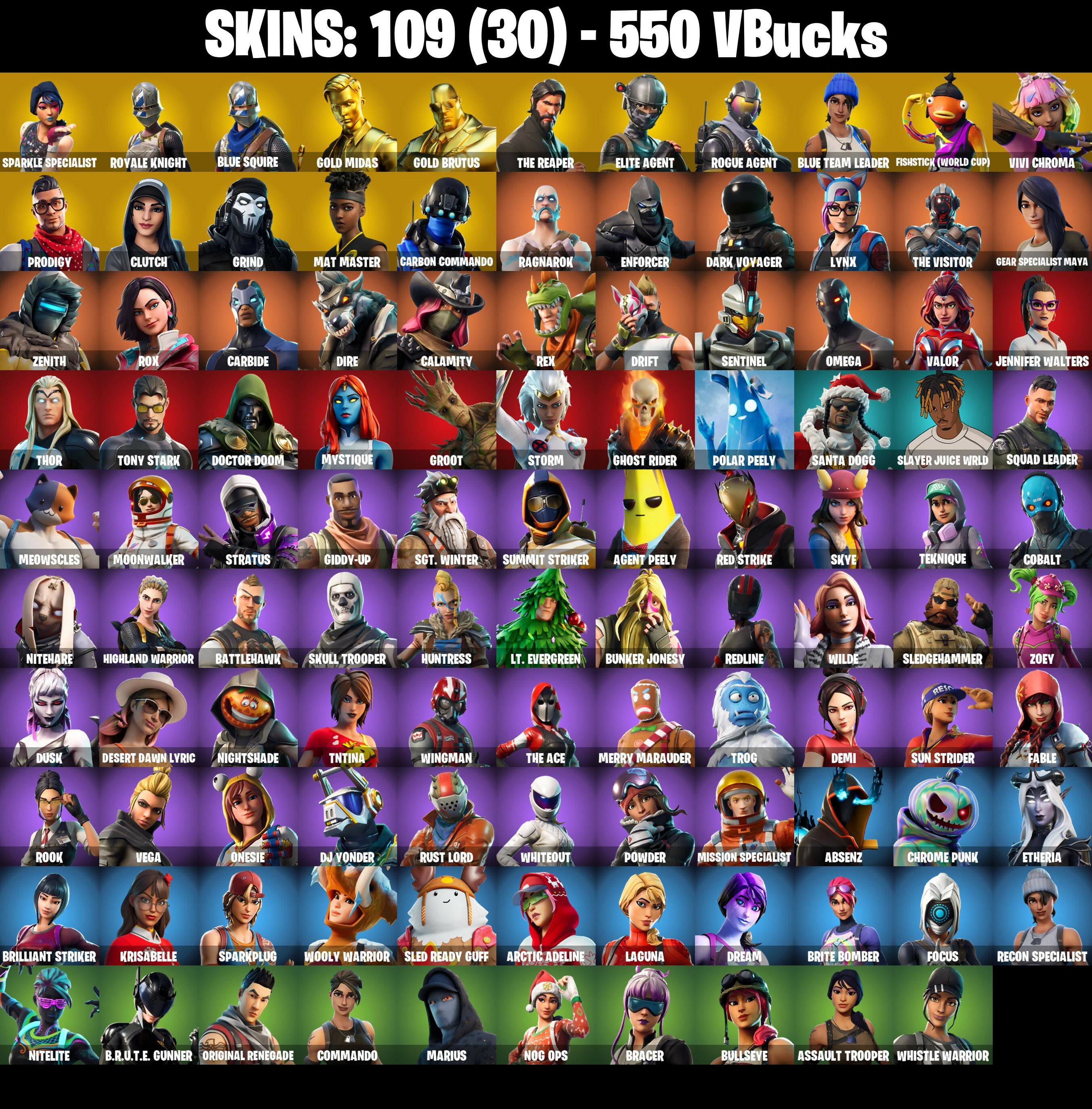 PC/PSN/XBOX |109 skins | Sparkle Specialist | Royale Knight | Blue Squire | Gold Midas | Gold Brutus | The Reaper | Elite Agent | Rogue Agent | #B606