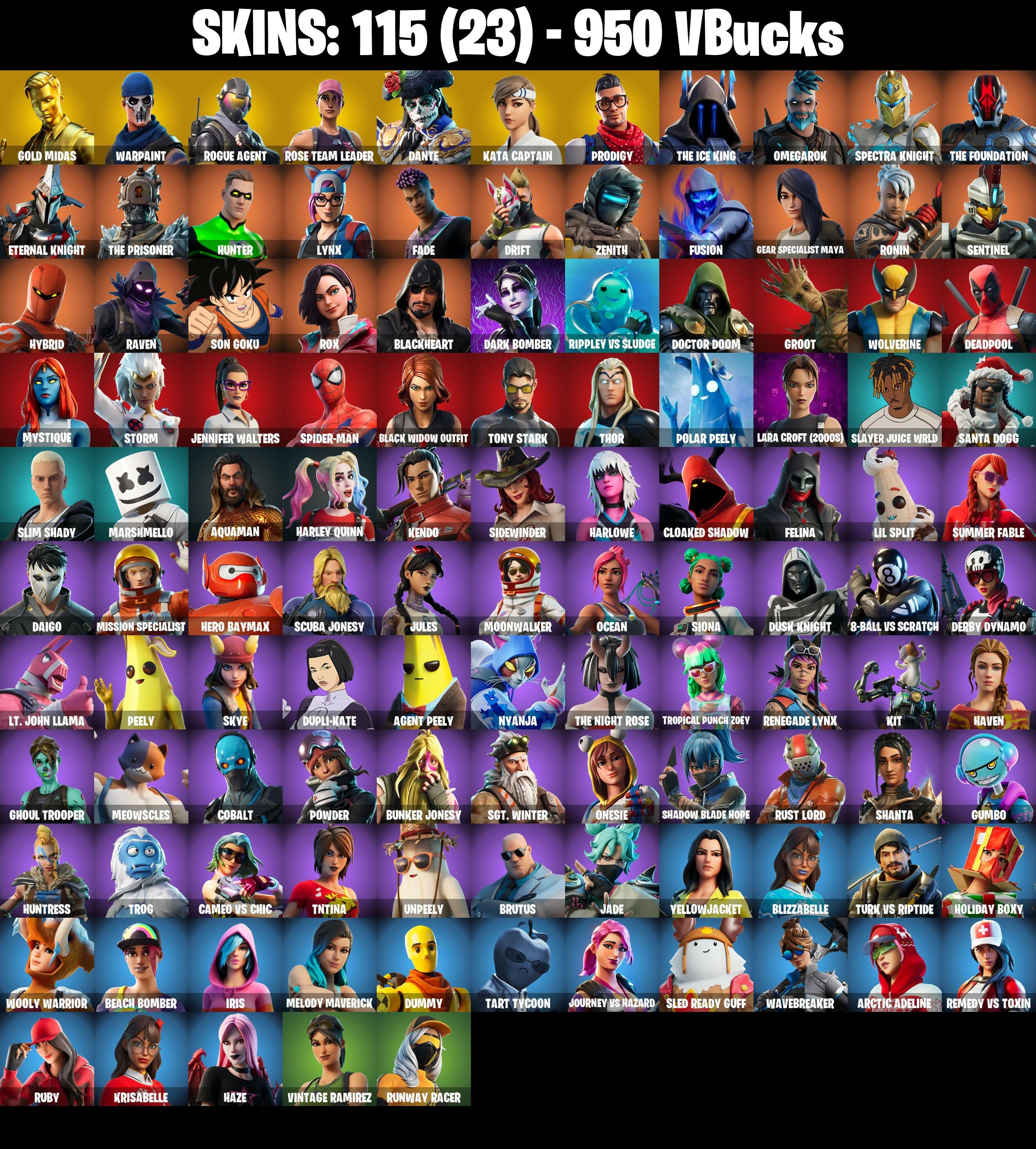 PC/PSN/XBOX |115 skins | OG STW | Deadpool | Gold Midas | Reaper | Take The L | Rogue Agent | Drift | Jabba Switchway | The Ice King | Peely | #B772