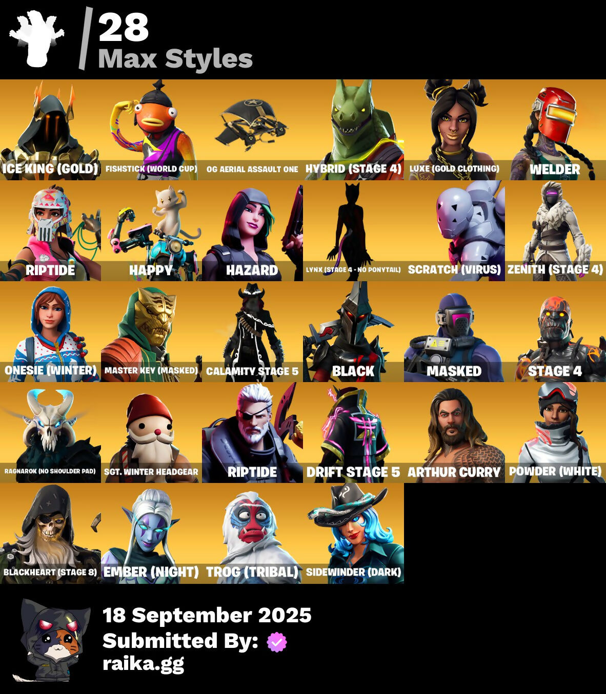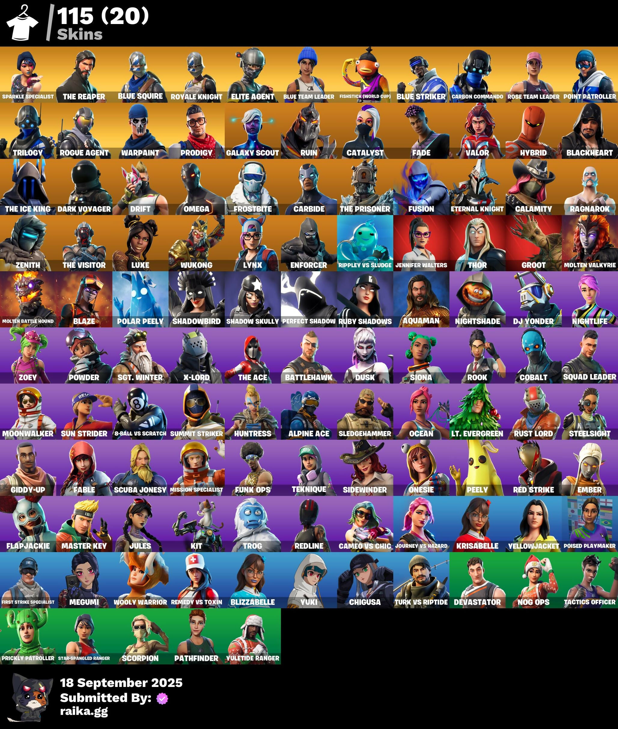 [PC/PSN/XBOX] 115 skins | OG STW | OG Aerial Assault One Glider | Sparkle Specialist | The Reaper | Blue Squire | Royale Knight | Elite Agent | Fishstick (World Cup) | 165 VB / Fortnite