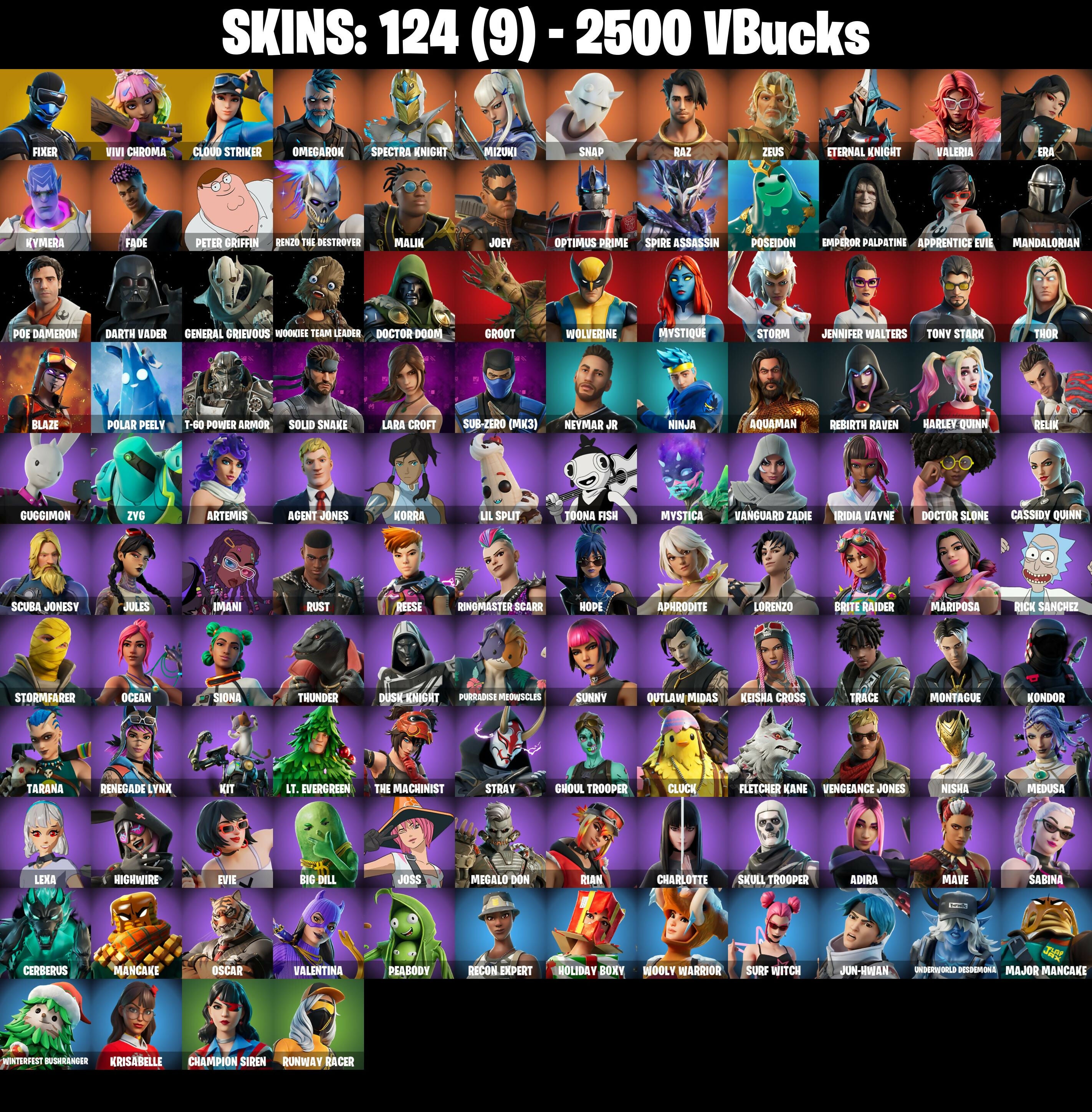 PC/PSN/XBOX |124 skins | Lara Croft | Eternal Knight | Tony Stark | Spire Assassin | Rick Sanchez | Darth Vader | Mizuki | Optimus Prime | #B814