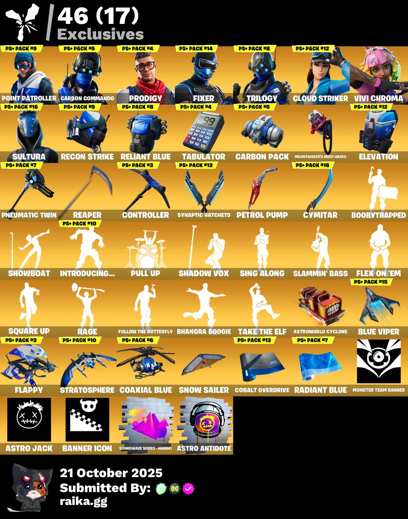 [PC/PSN/XBOX] 128 skins | Point Patroller | Carbon Commando | Prodigy | Fixer | Trilogy | Cloud Striker | Vivi Chroma | Sultura | On | 250 VB #a66