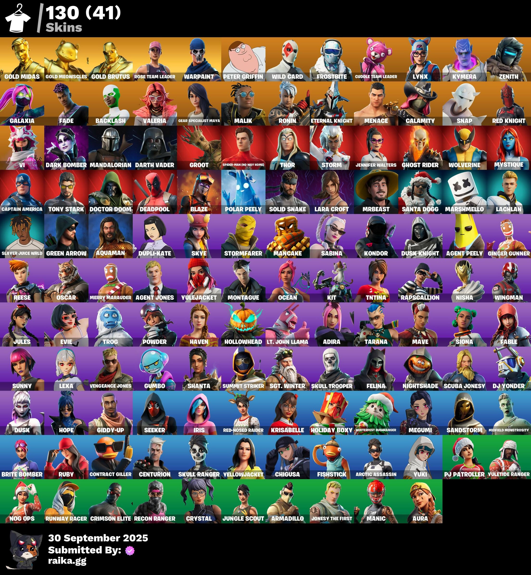 [PC/PSN/XBOX] 130 skins | OG STW | Gold Midas | Gold Meowscles | Gold Brutus | Peter Griffin | Wild Card | Frostbite | Cuddle Team Leader | Lynx | Kymera | -22780 VB