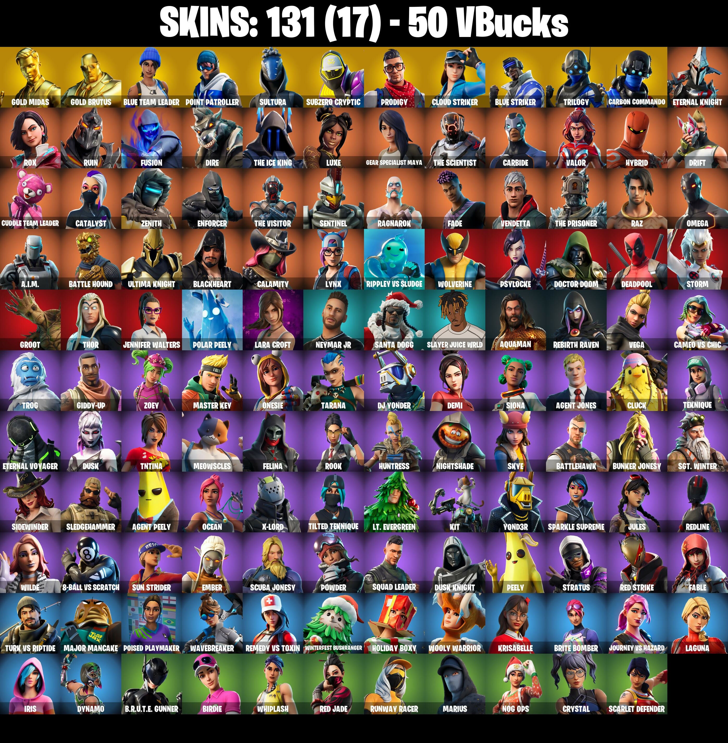PC/PSN/XBOX |131 skins | Lara Croft | Deadpool | Gold Midas | Gold Brutus | Omega | Orange Justice | Drift | Carbide | Rage | Ragnarok | Dire | #B754