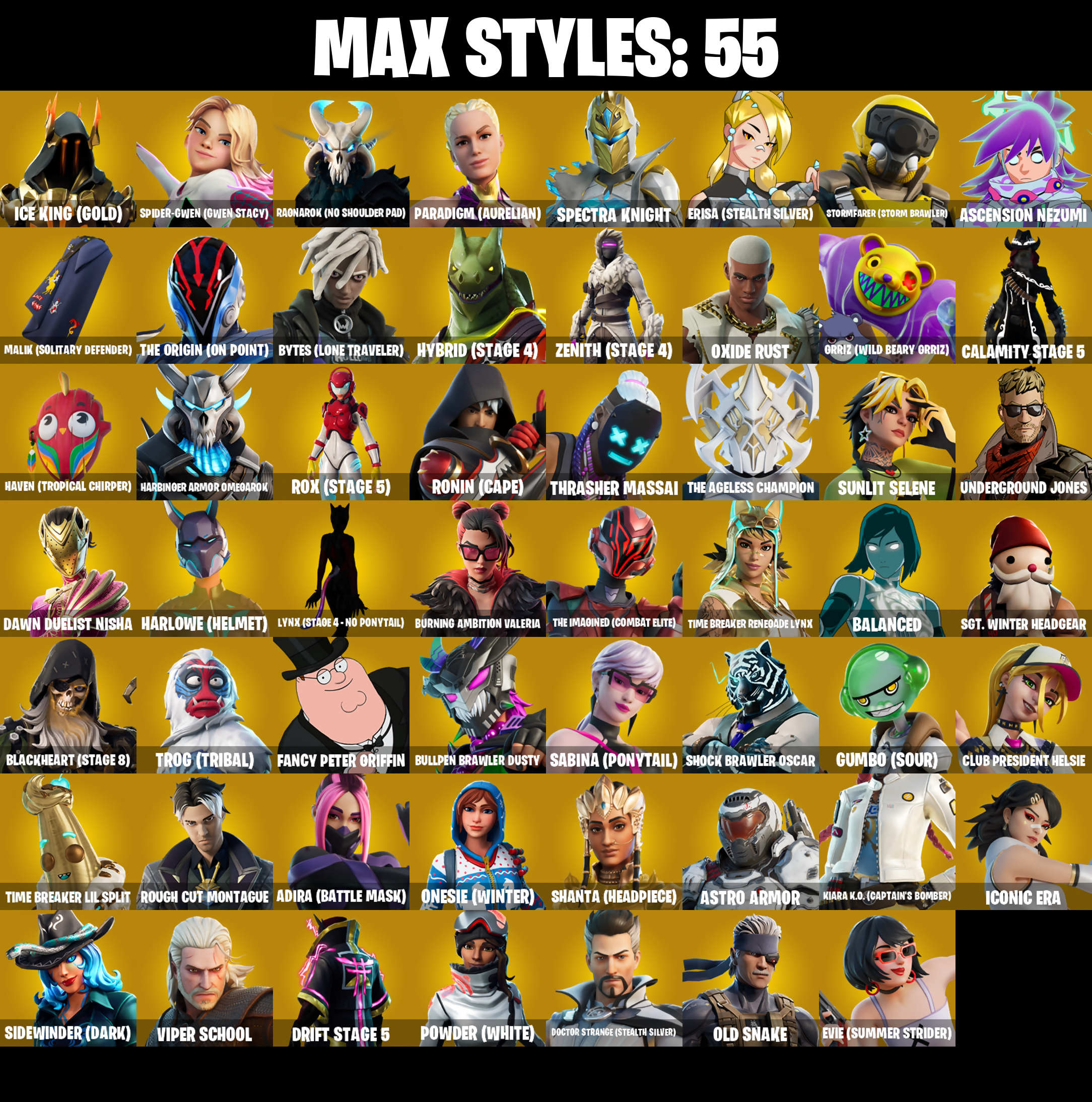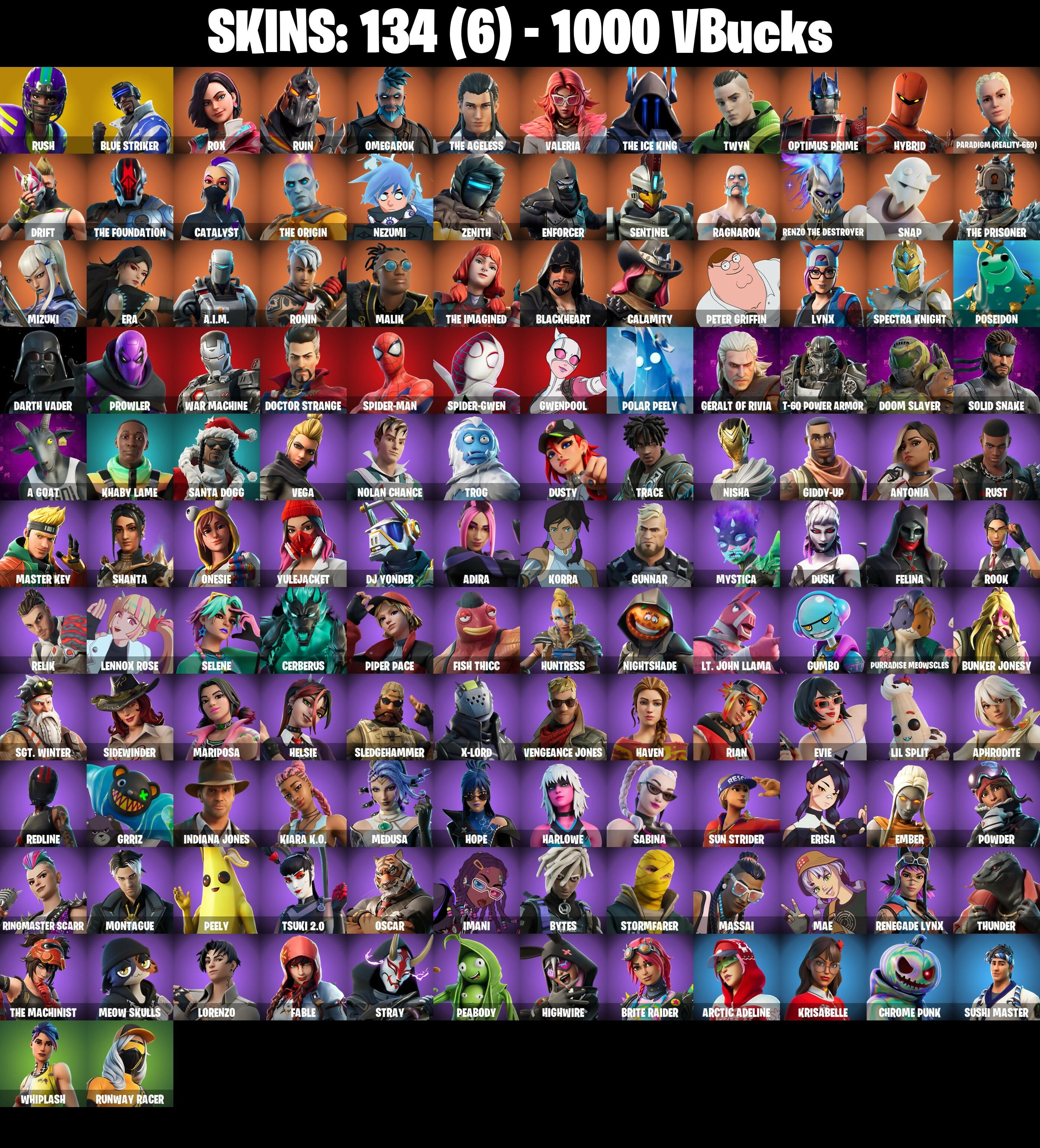 PC/PSN/XBOX |134 skins | Spider-Gwen | Orange Justice | Rush | Drift | Ragnarok | The Ice King | Peely | Spider-Man | Doctor Strange | #B744