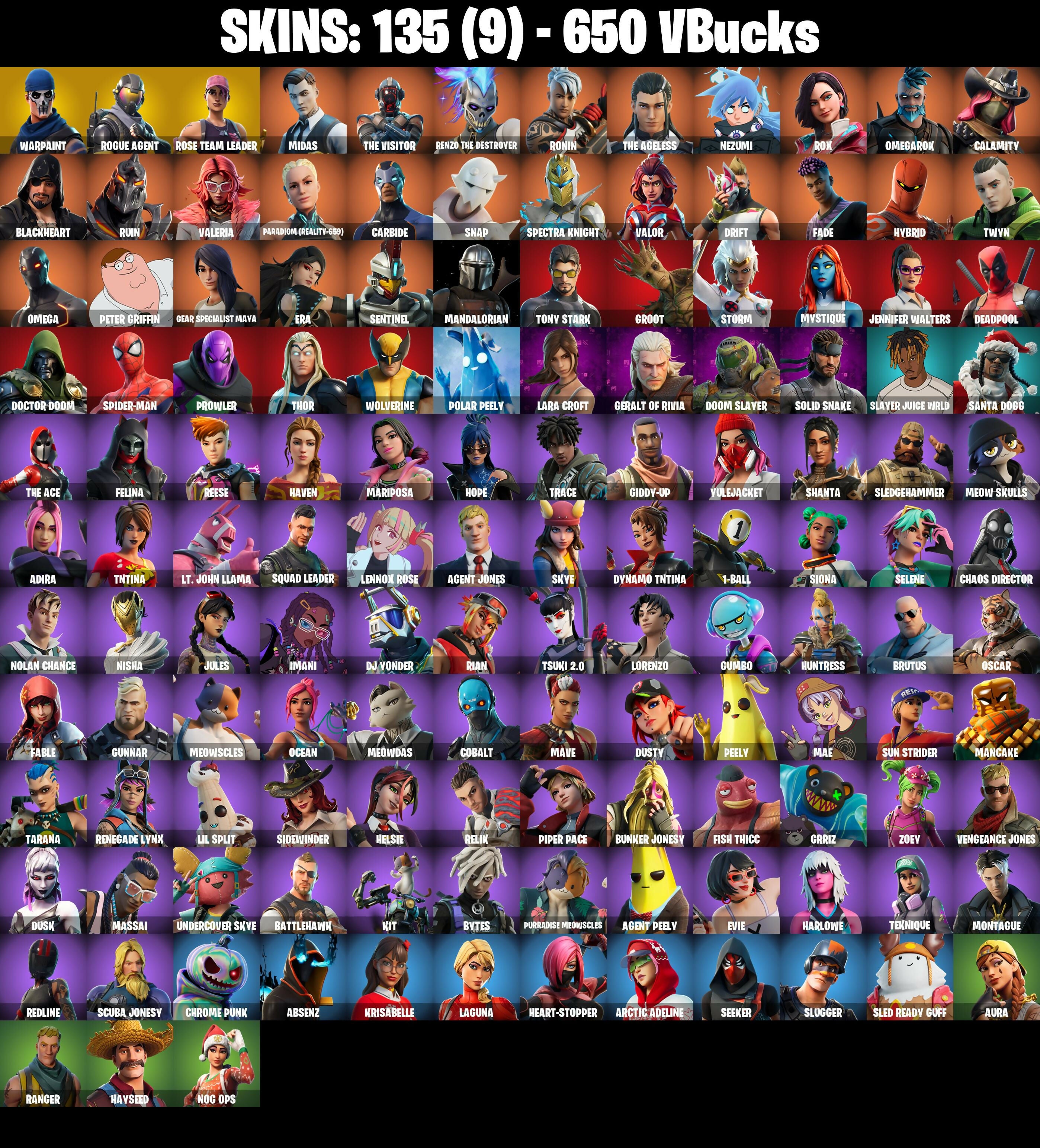 PC/PSN/XBOX |135 skins | OG STW | Lara Croft | Deadpool | Reaper | Omega | Orange Justice | Rogue Agent | Drift | Carbide | Peely | Spider-Man | #B742