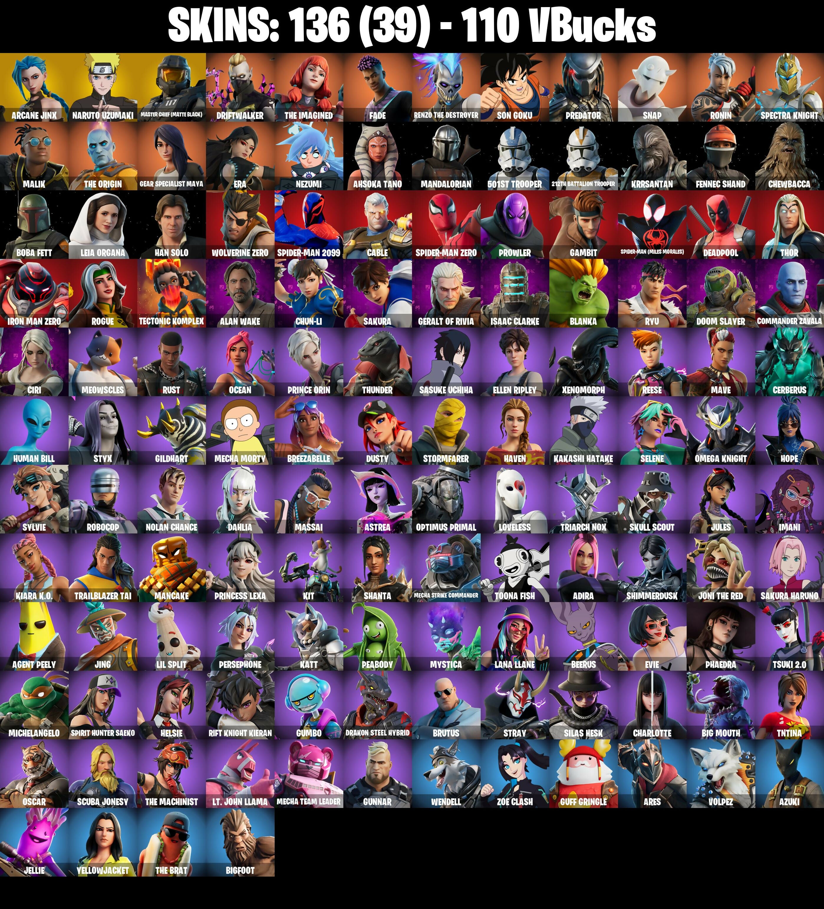 PC/PSN/XBOX |136 skins | Arcane Jinx | Ryu | Naruto Uzumaki | Kakashi Hatake | Sakura Haruno | Chun-Li | Deadpool | #B737
