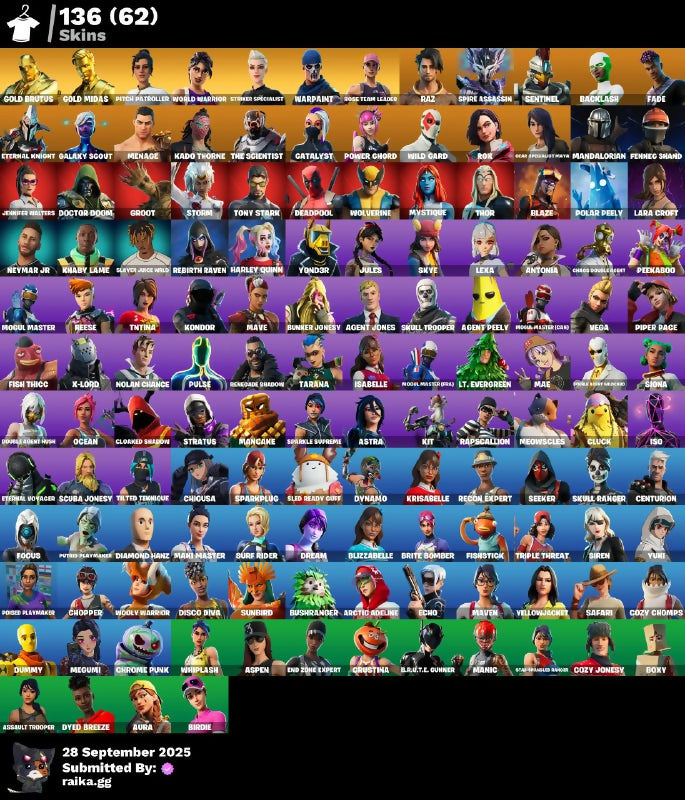 [PC/PSN/XBOX] 136 skins | OG STW | Gold Brutus | Gold Midas | Pitch Patroller | World Warrior | Striker Specialist | Raz | Spire Assassin | Sentinel | Backlash | 260 VB