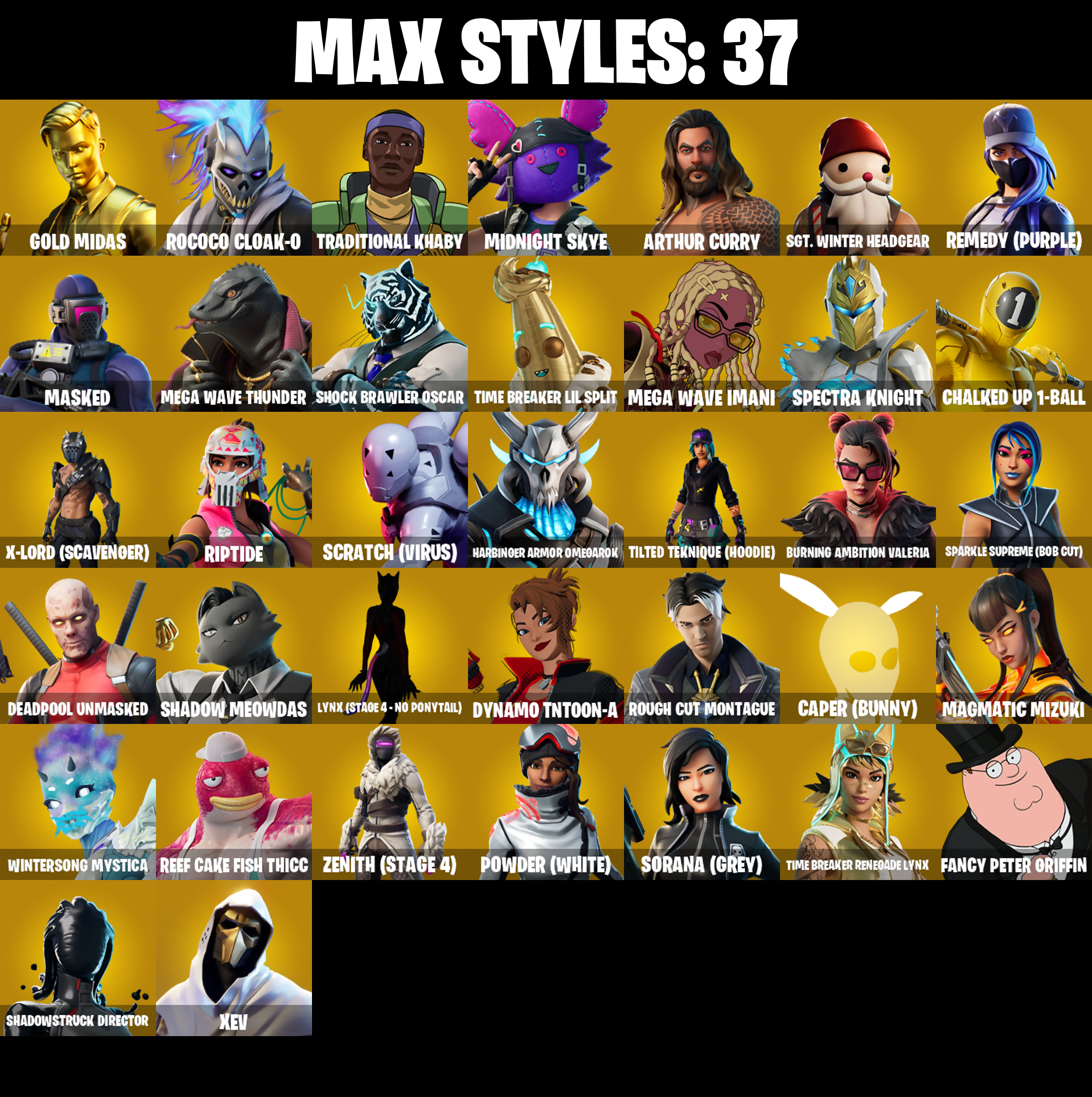PC/PSN/XBOX |137 skins | Deadpool | Gold Midas | Jabba Switchway | Rage | Championship Aura | Fusion | Mizuki | Kado Thorne | Lynx | #B736
