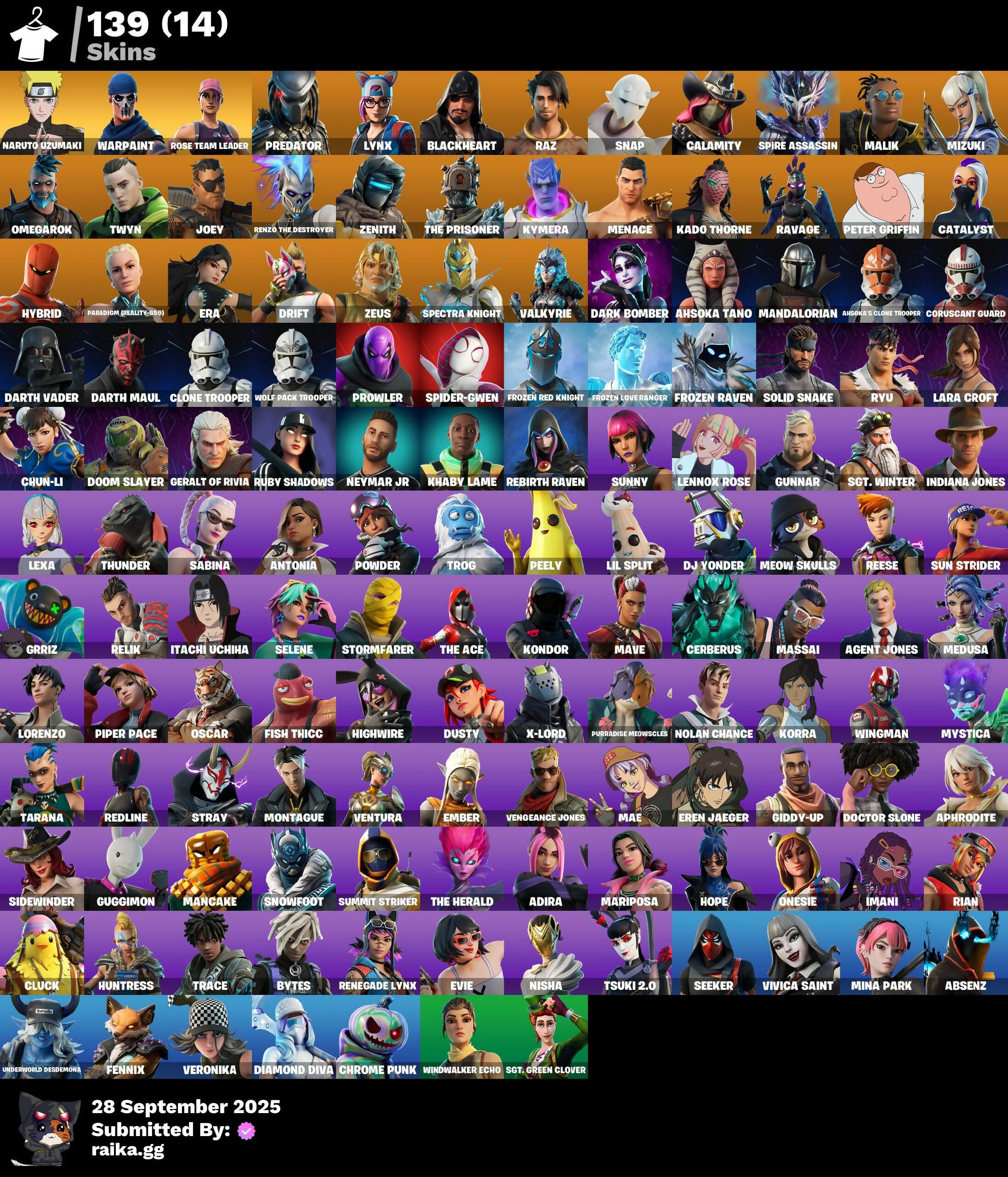 [PC/PSN/XBOX] 139 skins | OG STW | Naruto Uzumaki | Predator | Lynx | Blackheart | Raz | Snap | Calamity | Spire Assassin | Malik | Mizuki | Omegarok | Twyn | 750 VB