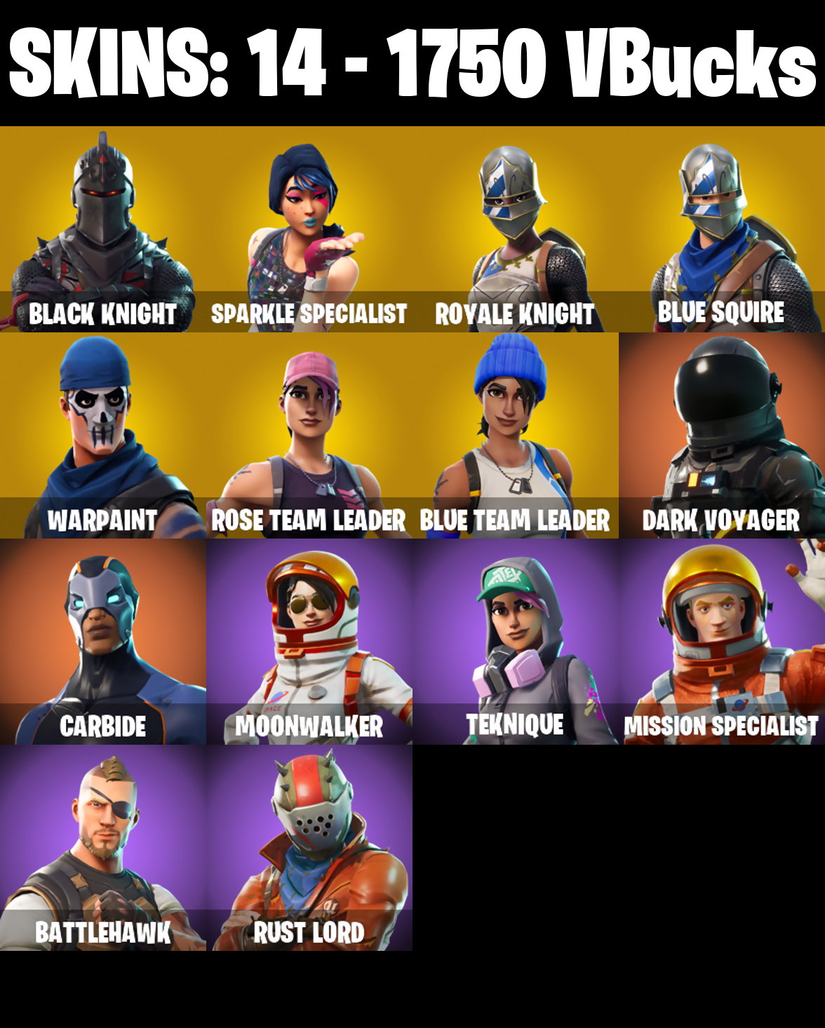PC/PSN/XBOX |14 skins | OG STW | Black Knight | Sparkle Specialist | Royale Knight | Blue Squire | Blue Team Leader | Black Shield | Rust Bucket | #B609