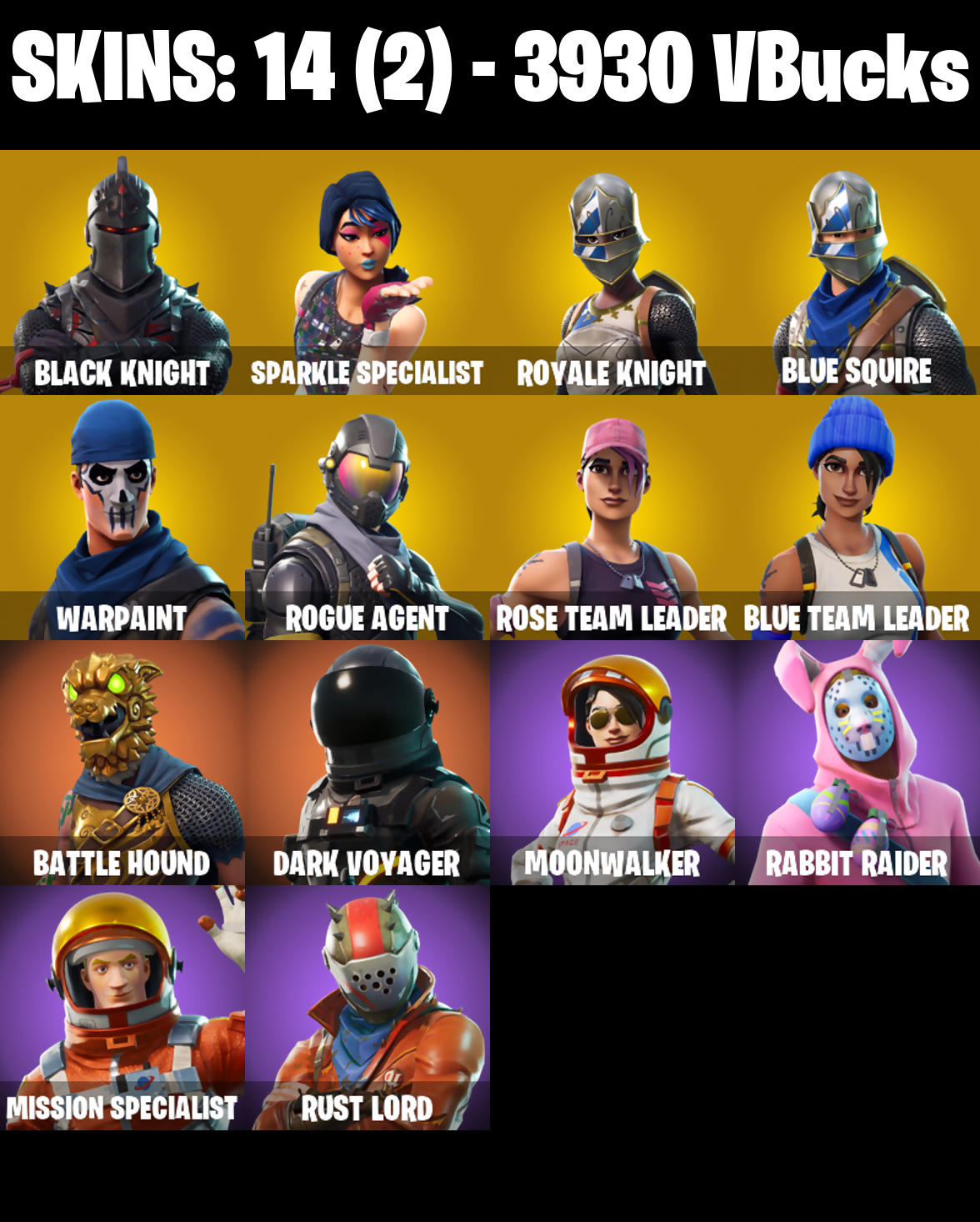 PC/PSN/XBOX |14 skins | OG STW | Black Knight | Sparkle Specialist | Royale Knight | Blue Squire | Rogue Agent | Blue Team Leader | Black Shield | #B610