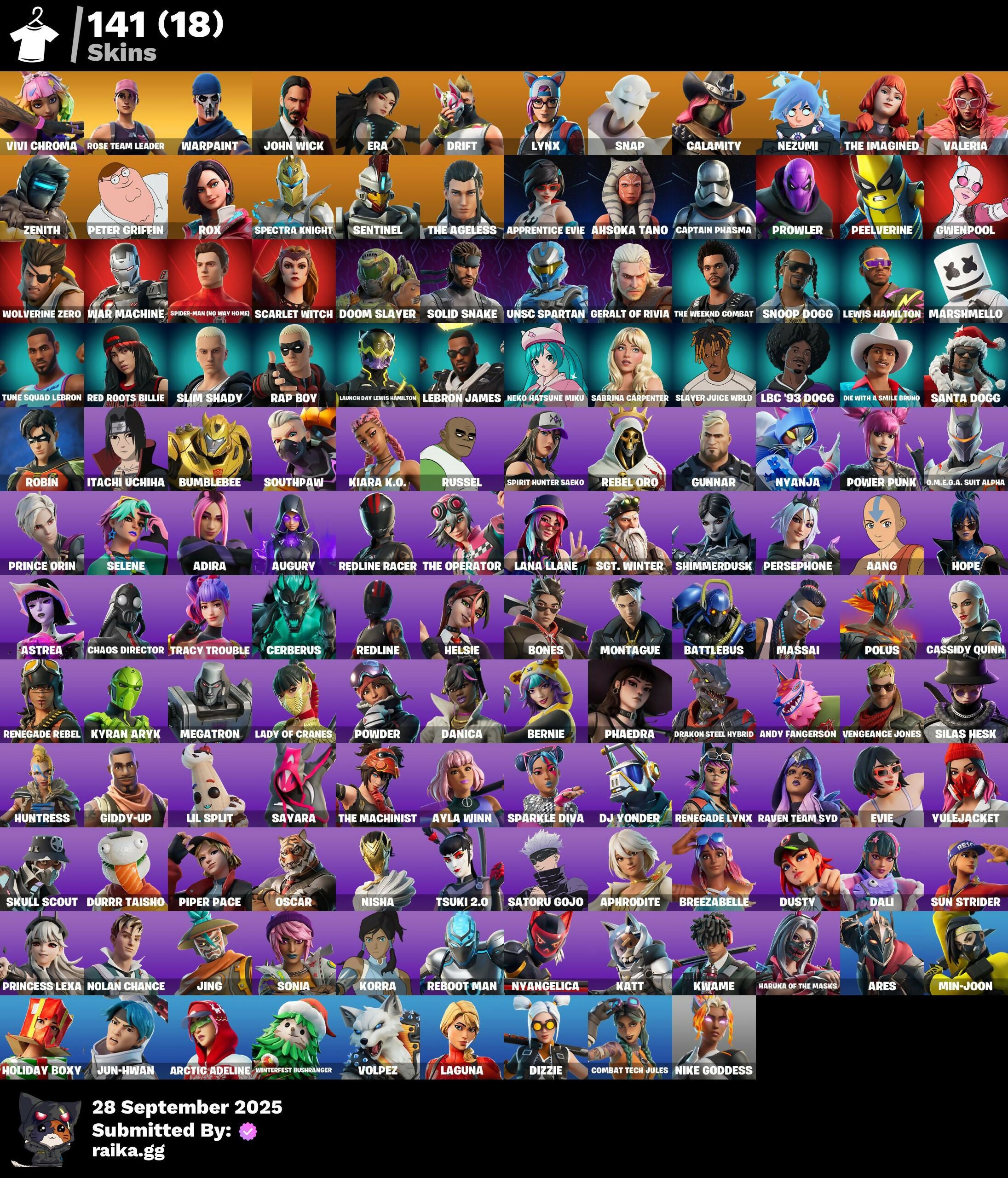 [PC/PSN/XBOX] 141 skins | OG STW | Vivi Chroma | John Wick | Era | Drift | Lynx | Snap | Calamity | Nezumi | The Imagined | Valeria | Zenith | Peter Griffin | 9425 VB