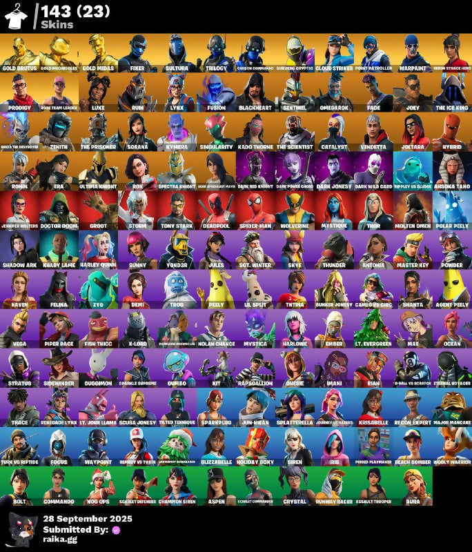 [PC/PSN/XBOX] 143 skins | OG STW | Gold Brutus | Gold Meowscles | Gold Midas | Fixer | Sultura | Trilogy | Carbon Commando | Subzero Cryptic | Cloud Striker | 260 VB