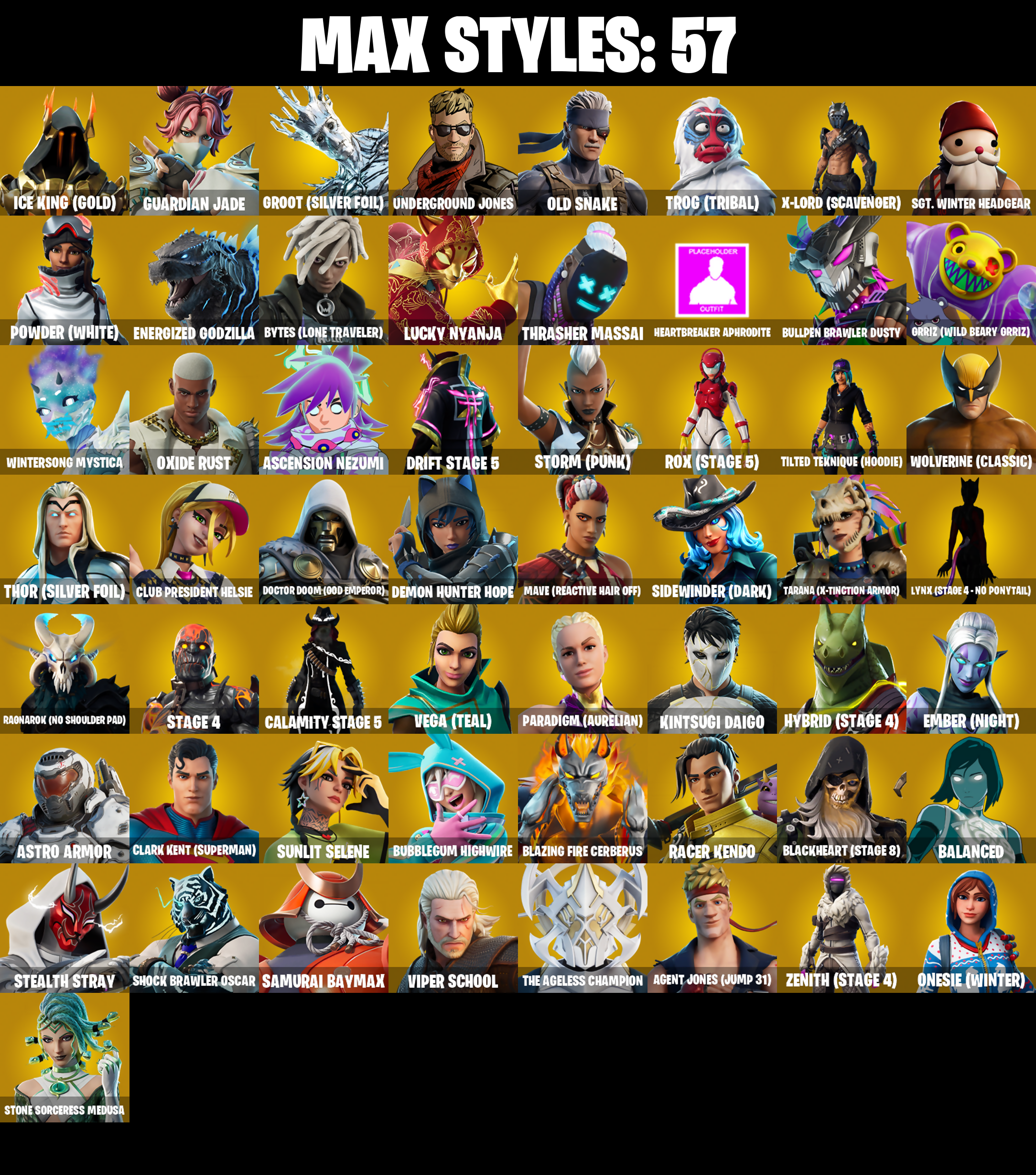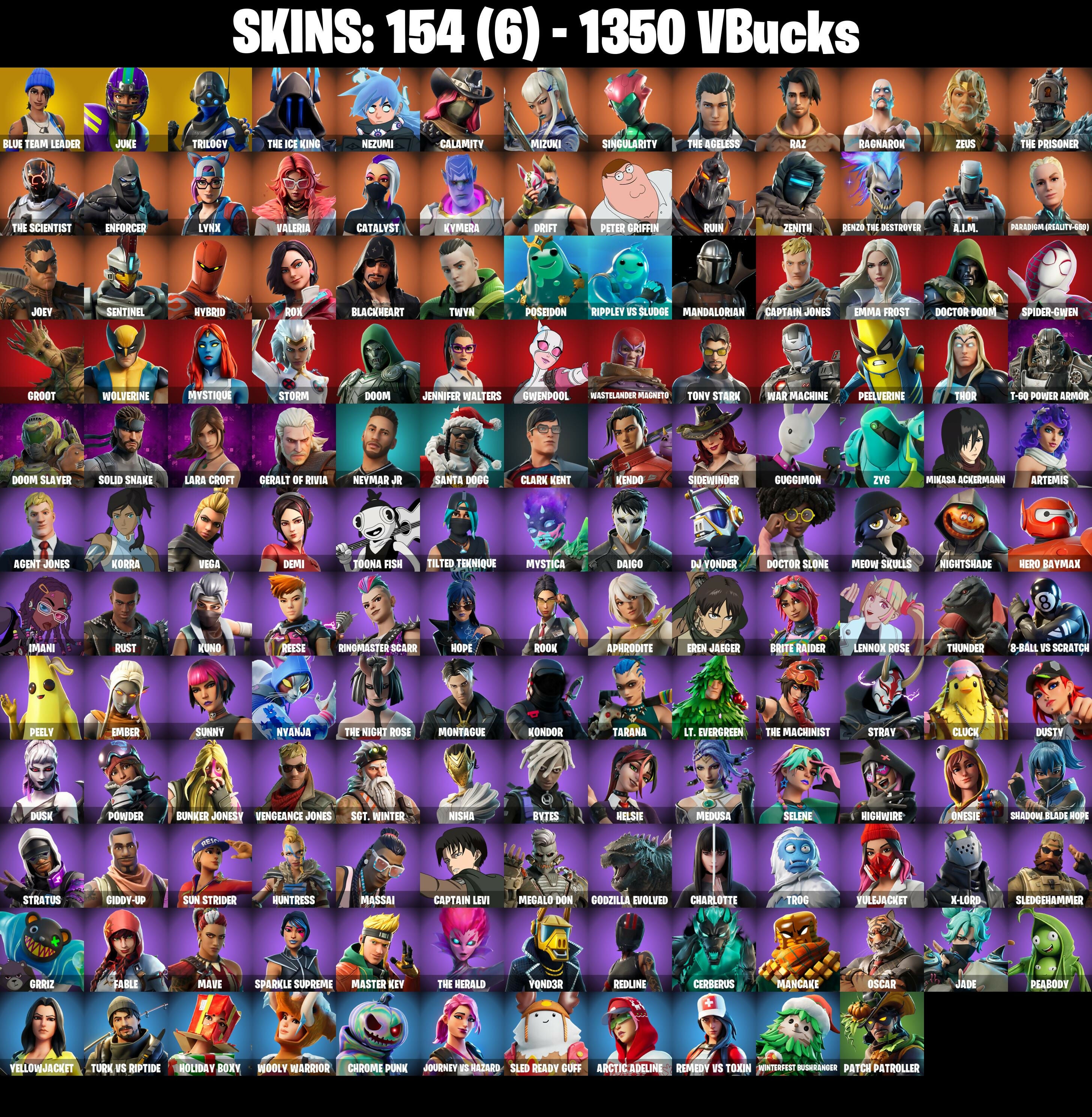 PC/PSN/XBOX |154 skins | Lara Croft | Spider-Gwen | Orange Justice | Drift | Ragnarok | The Ice King | Peely | Tony Stark | The Ageless | #B802