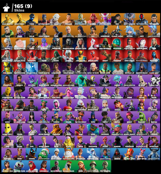 [PC/PSN/XBOX] 165 SKINS + GOLD MIDAS + GOLD BRUTUS + LARA CROFT + FIXER + INDIANA JONES + SPIDER MAN + PETER GRIFFIN + SURF WITCH