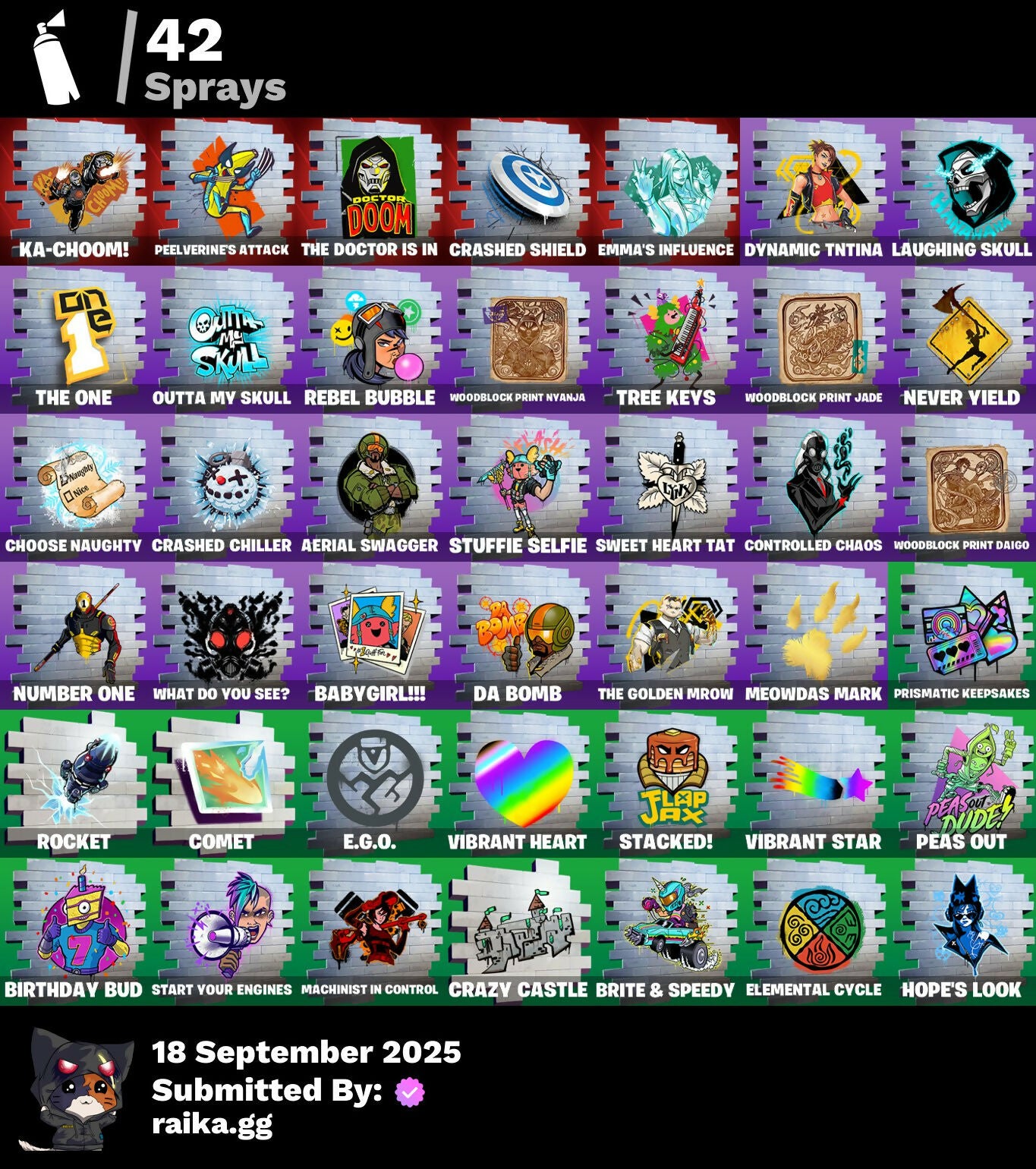 Sprays: 42