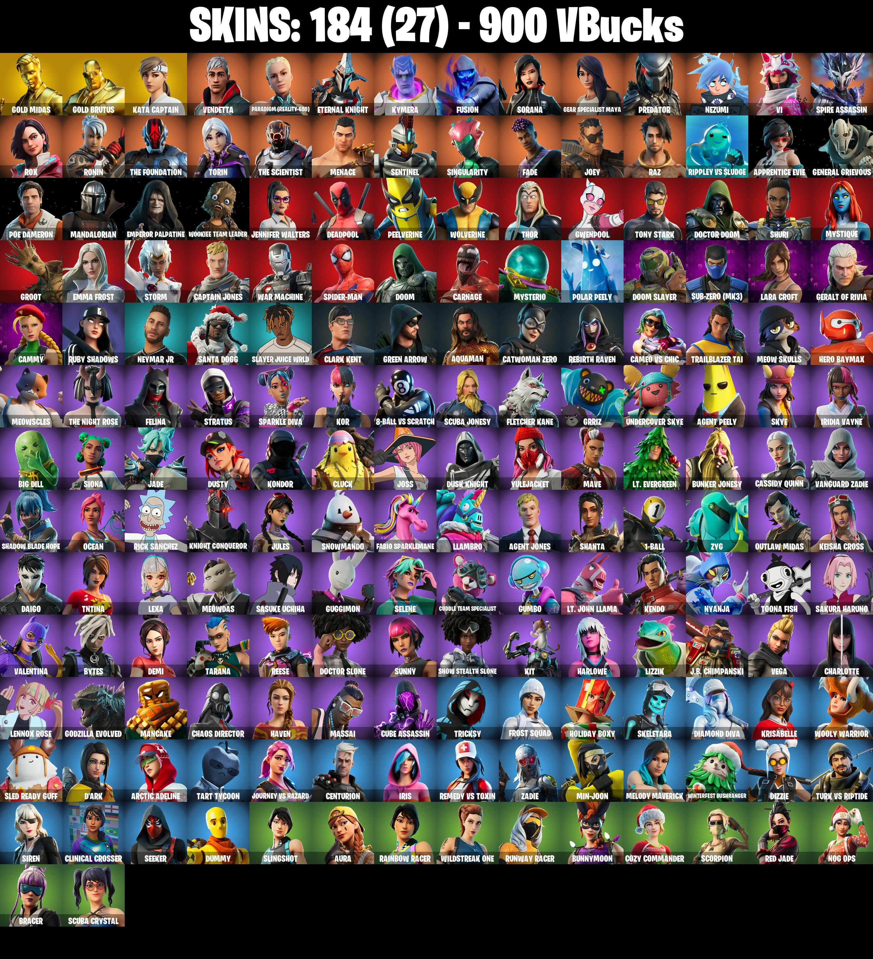 PC/PSN/XBOX |184 skins | Gold Midas | Gold Brutus | Kata Captain | Reaper | Basic Basher | Tech Axe | Ol' Woody | Laugh It Up | Verve | #B654