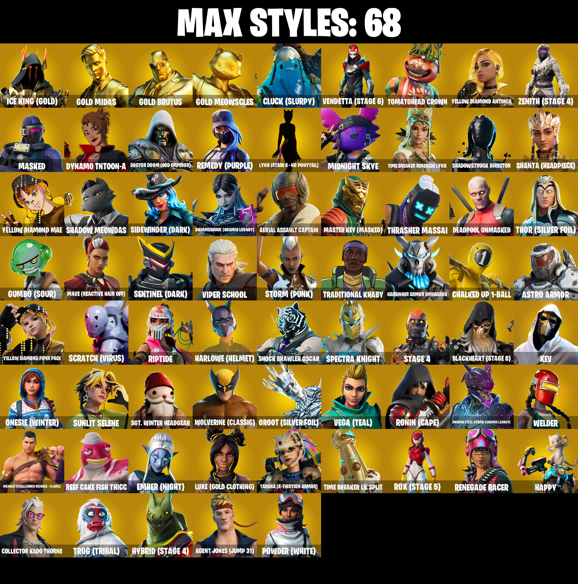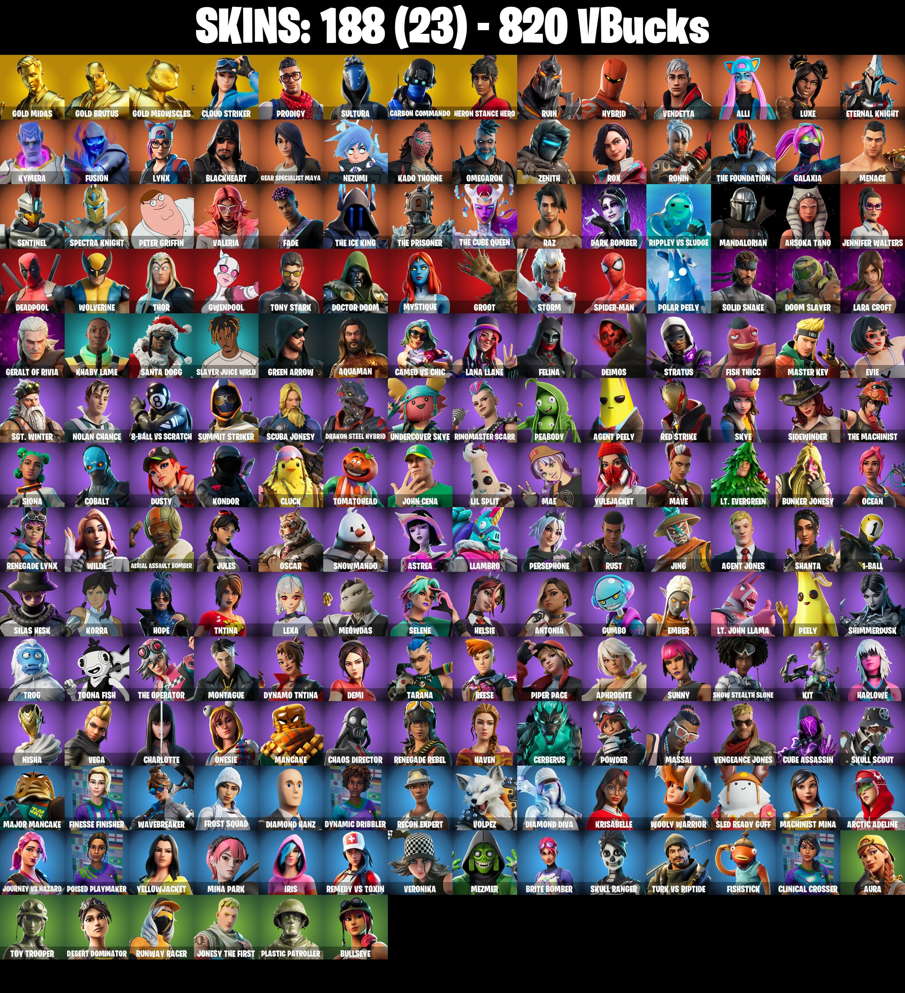 PC/PSN/XBOX |188 skins | Gold Midas | Gold Brutus | Gold Meowscles | Cloud Striker | Prodigy | Sultura | Carbon Commando | Heron Stance Hero | #B616