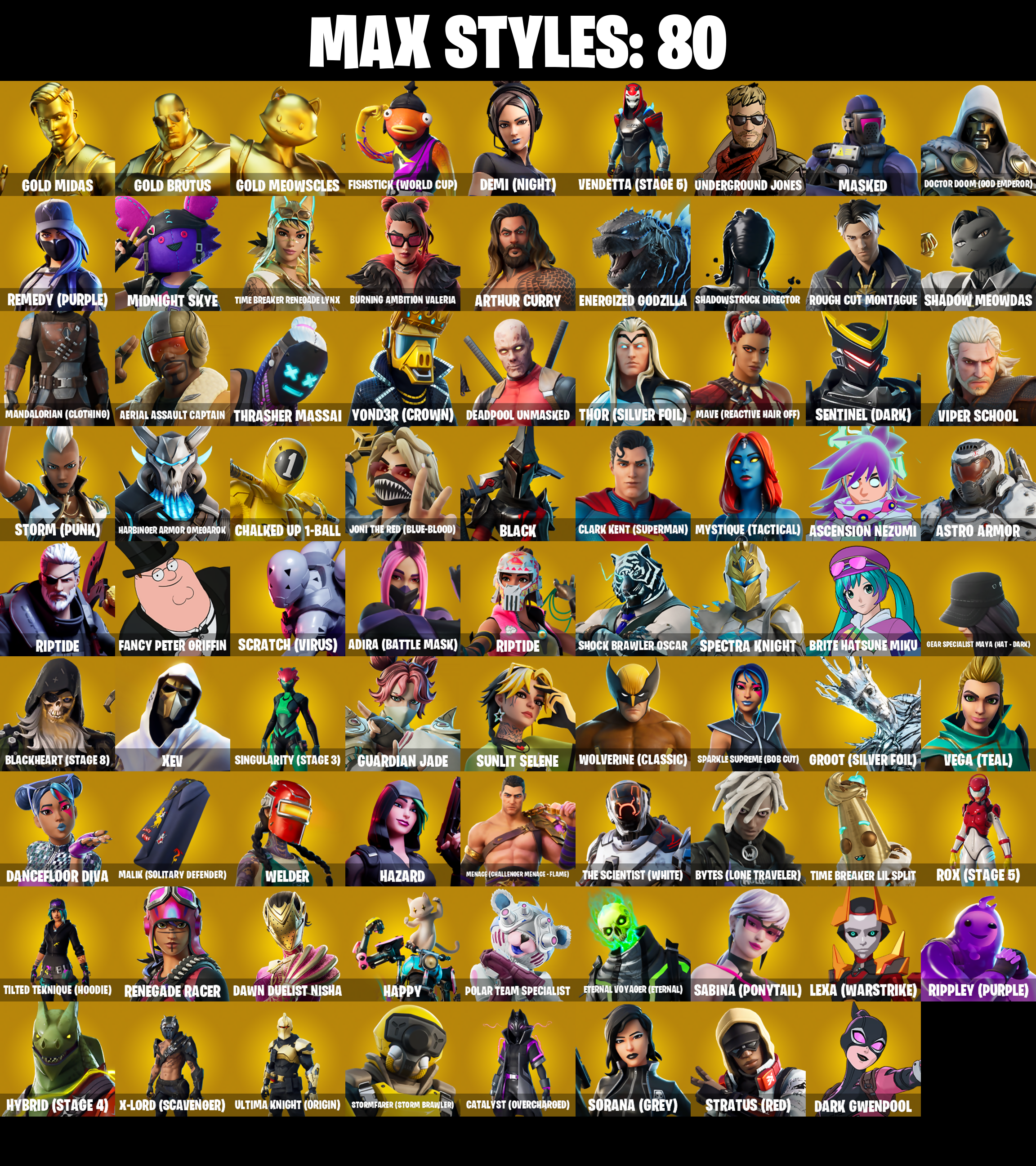 PC/PSN/XBOX |189 skins | Glow | Neo Versa | Gold Midas | Gold Brutus | Gold Meowscles | Fishstick (World Cup) | Subzero Cryptic | Lina Scorch | #B526
