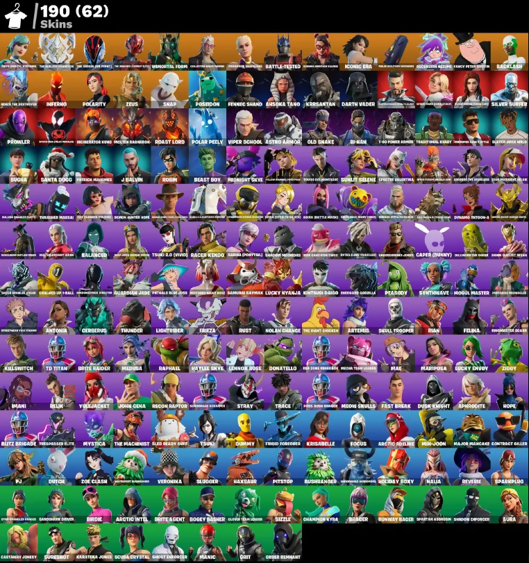 [PC/PSN/XBOX] 190 SKINS + J BALVIN + BUGHA + POLARITY + SNAP + BLACKLASH + ROBIN + MOGUL MASTER + OLD SNAKE + PARENTAL CODE