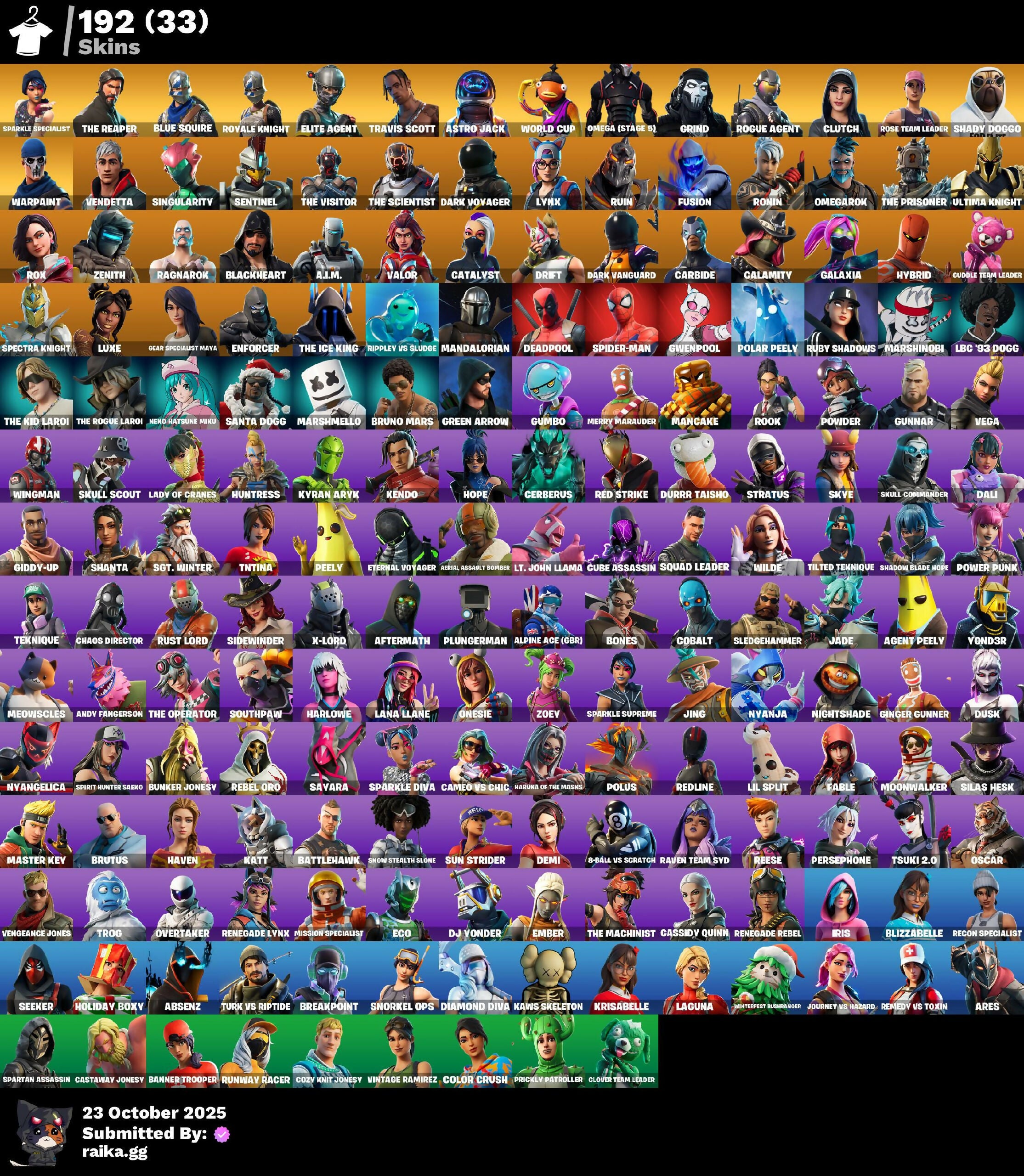 [PC/PSN/XBOX] 192 skins | OG STW | Sparkle Specialist | The Reaper | Blue Squire | Royale Knight | Elite Agent | Travis Scott | Astro Jack | WORLD CUP | 7650 VB
