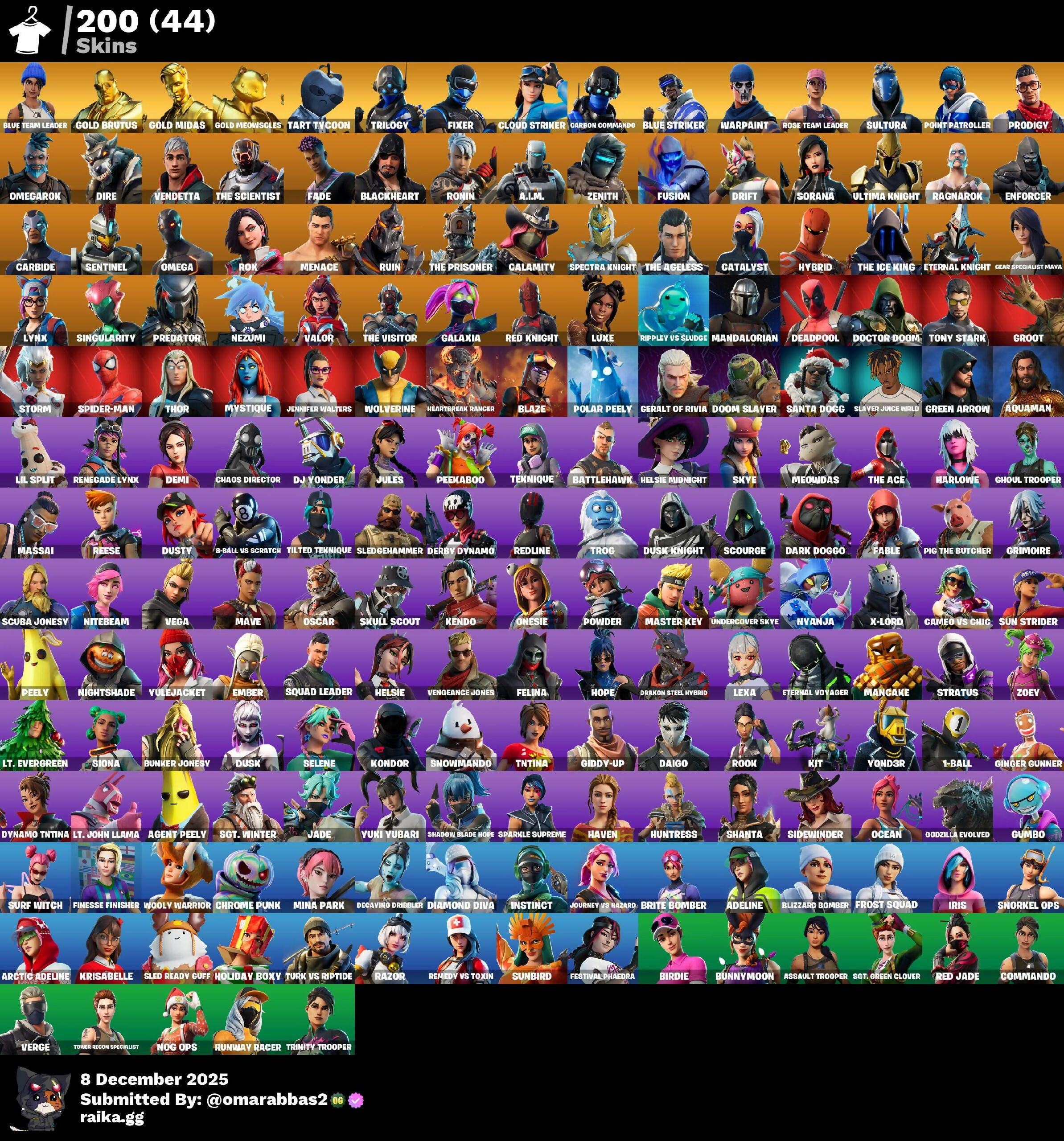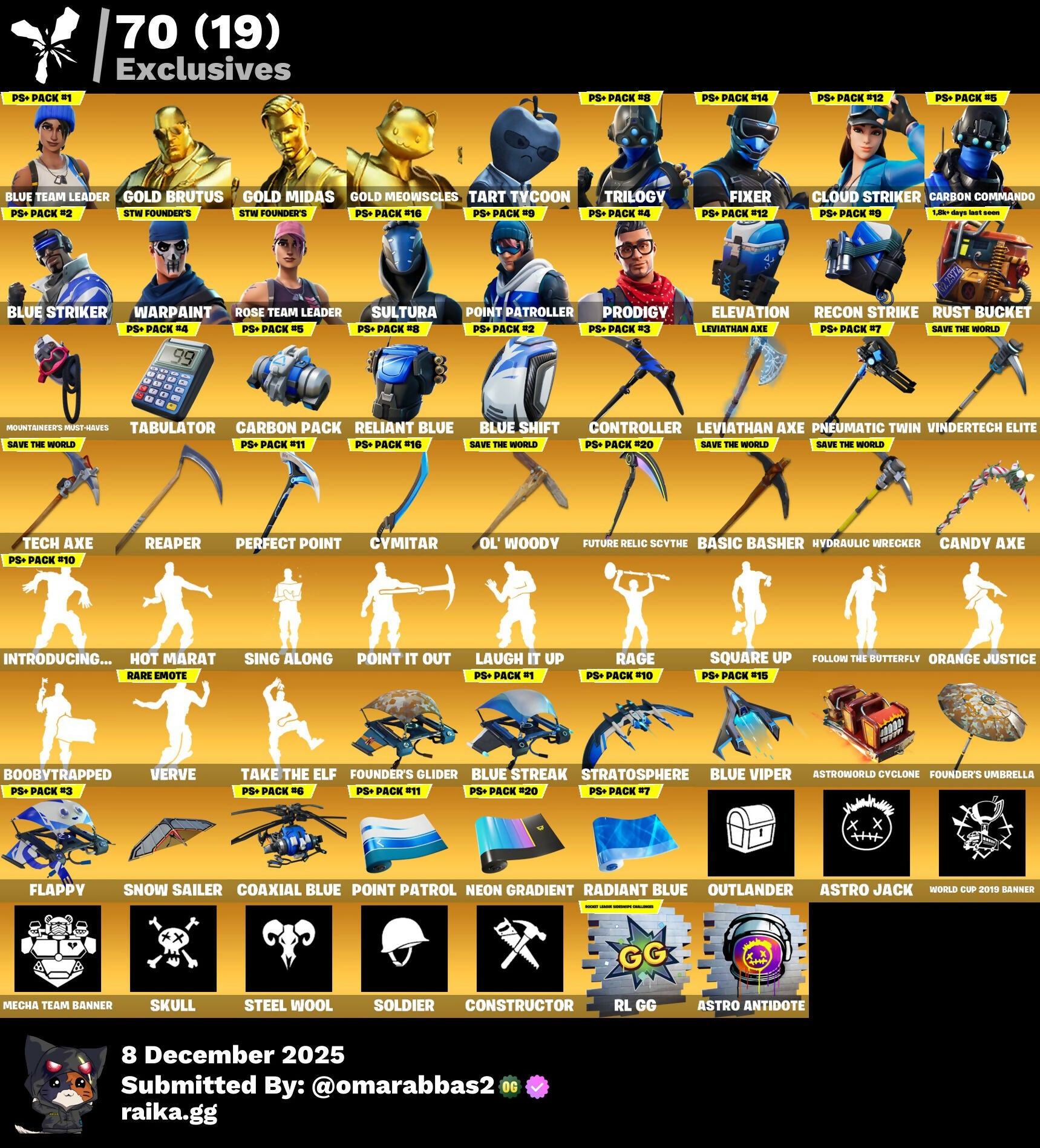 [PC/PSN/XBOX] 200 skins | OG STW | Blue Team Leader | Gold Brutus | Gold Midas | Gold Meowscles | Tart Tycoon | Trilogy | Fixer | Cloud Striker | 700 VB