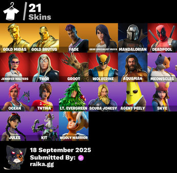 [PC/PSN/XBOX] 21 skins | Gold Midas | Gold Brutus | Fade | Gear Specialist Maya | Mandalorian | Deadpool | Jennifer Walters | Thor | Groot | Wolverine | 350 VB / Fortnite