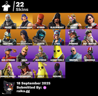[PC/PSN/XBOX] 22 skins | Havoc | Sub Commander | Hybrid | Blackheart | Drift | Rox | Sentinel | Gear Specialist Maya | Zenith | Lynx | Powder | Sgt. Winter | 850 VB / Fortnite