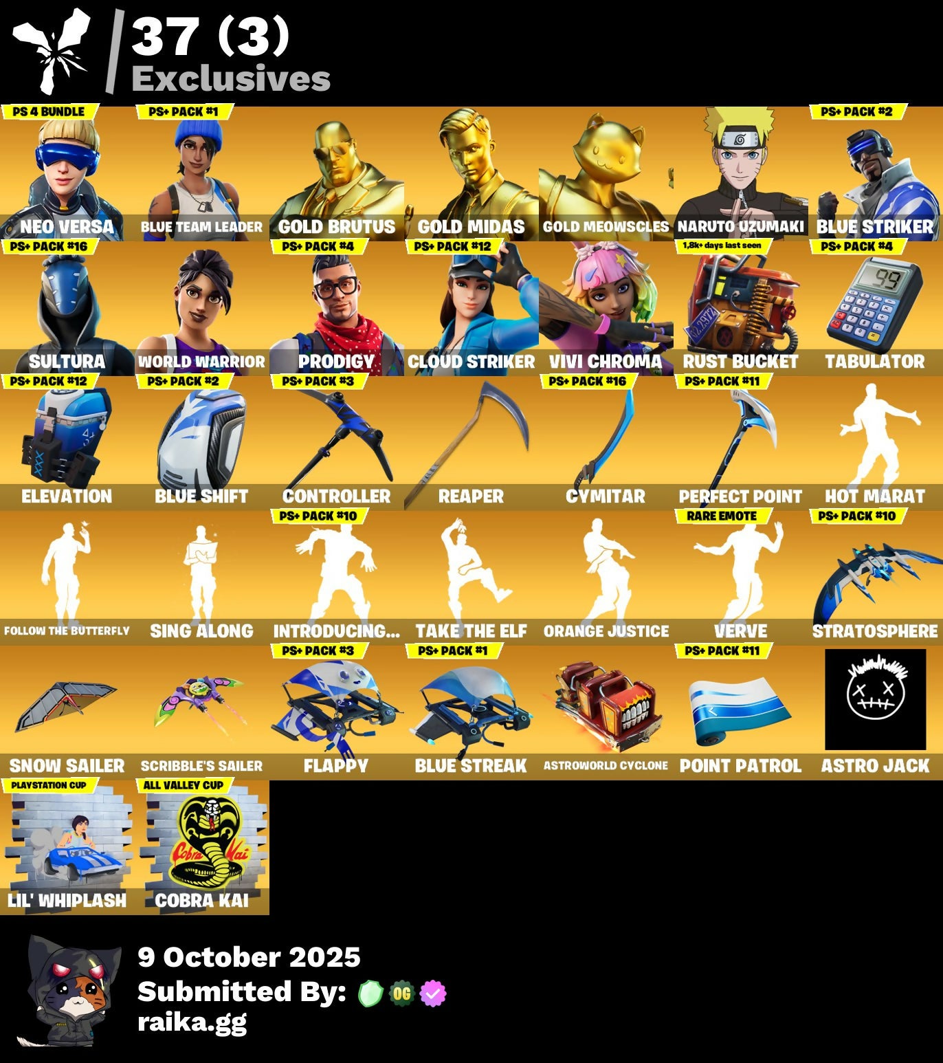 [PC/PSN/XBOX] 230 skins | Neo Versa | Blue Team Leader | Gold Brutus | Gold Midas | Gold Meowscles | Naruto Uzumaki | Blue Striker | Sultura | 450 VB #553