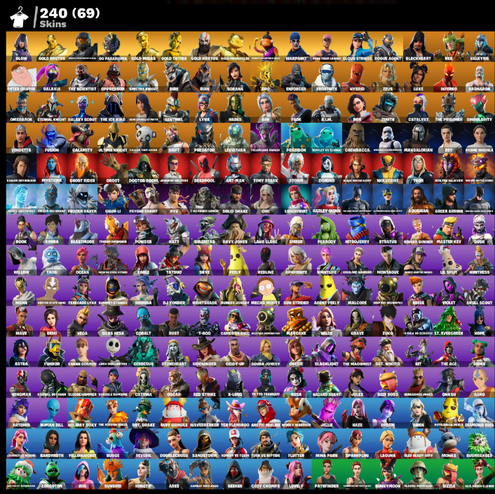 [PC/PSN/XBOX] 240 SKINS | OG STW | Glow | LEVIATHAN AXE | Gold Brutus | Master Chief (Matte Black) | OG Paradigma | Gold Midas | Gold TNTina | Gold Kratos | Gold Meowscles