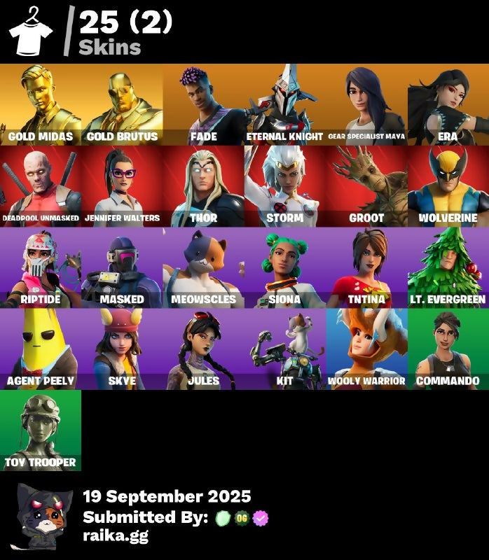 [PC/PSN/XBOX] 25 skins | Gold Midas | Gold Brutus | Fade | Eternal Knight | Gear Specialist Maya | Era | Deadpool Unmasked | Jennifer Walters | Thor | 50 VB #471