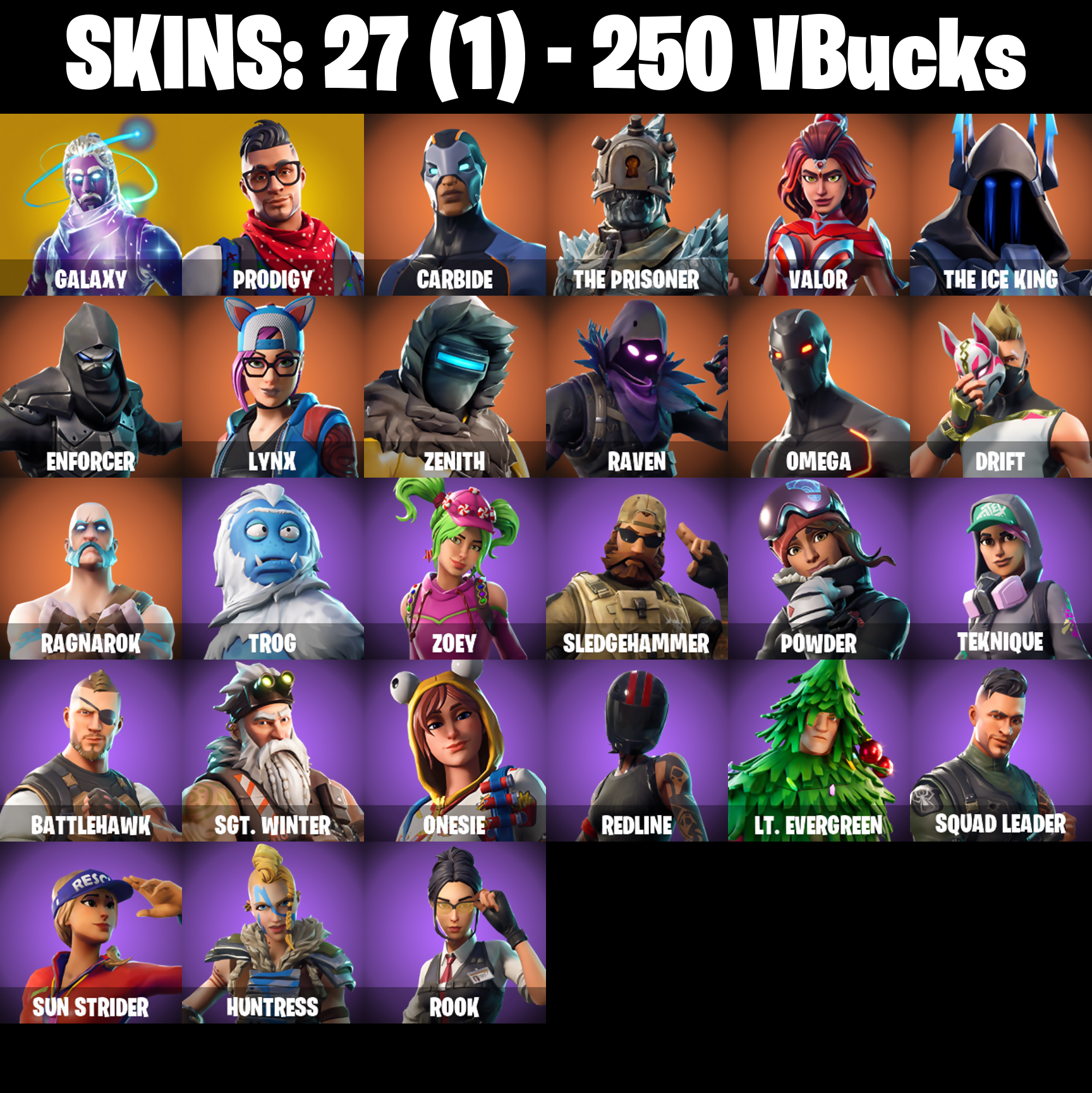 PC/PSN/XBOX |27 skins | Galaxy | Omega | Orange Justice | Drift | Carbide | Galactic Disc | Stellar Axe | Discovery | Ragnarok | The Ice King | #B789