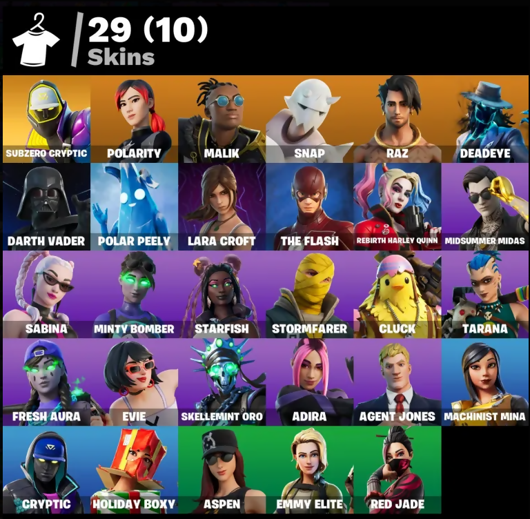 [PC/PSN/XBOX] 29 SKINS + SUBZERO CRYPTIC + LARA CROFT + THE FLASH + REBIRTH HARLEY QUINN + MINTY BOMBER + SNAP