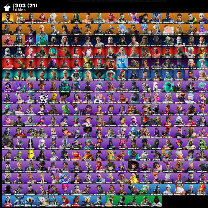 [PC/PSN/XBOX] 303 SKINS + JOHN WICK + SLIM SHADY + SNOOP DOGG + LARA CROFT + BLAZE + THE JOKER + DARK BOMBER + 3600 VB